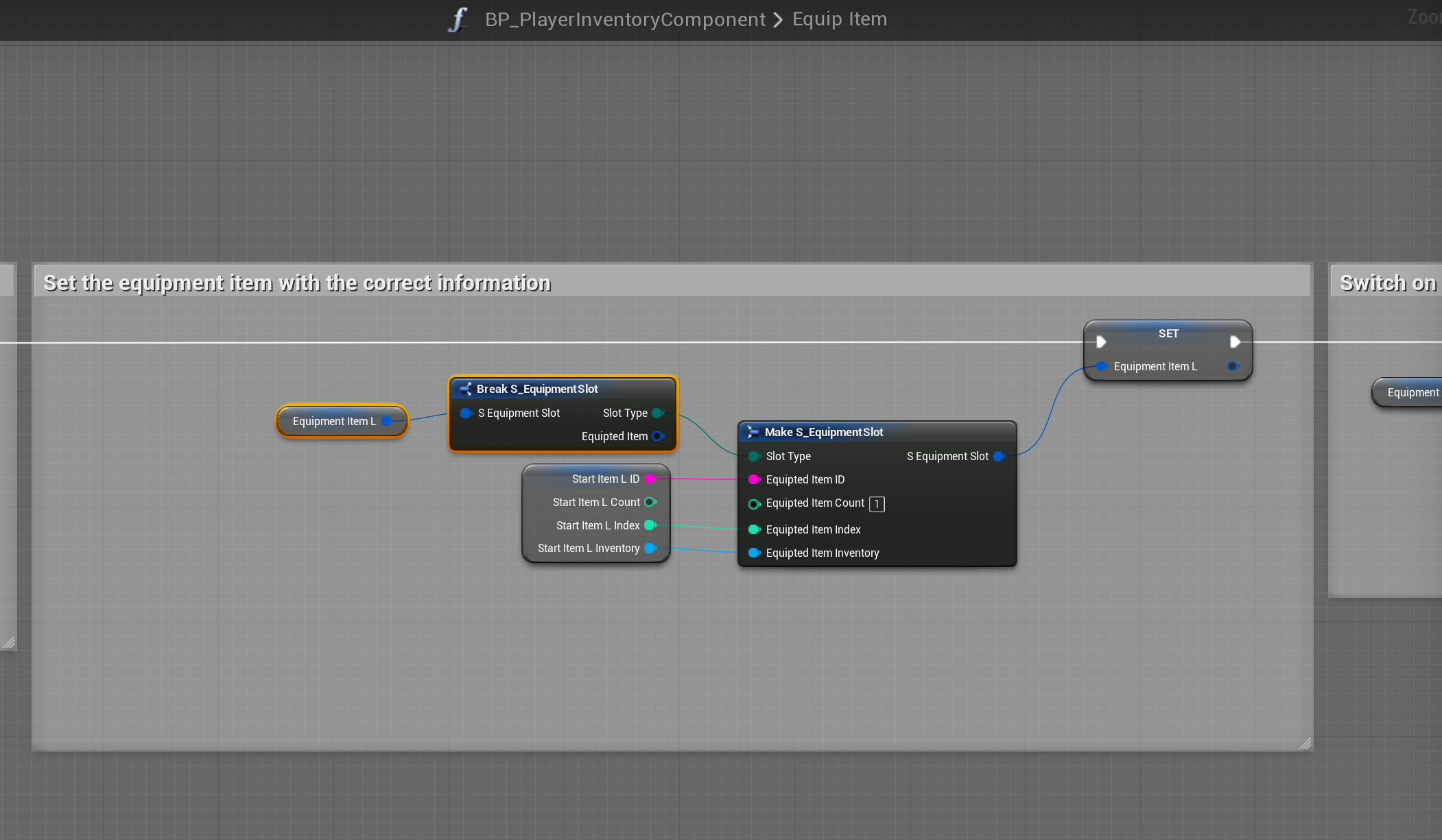 Next go to the BP_PlayerInventoryComponent and copy the video below, locations at the top of the video.