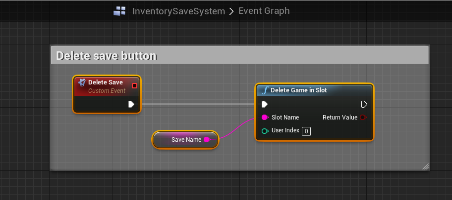 Added in editor delete save button to InventorySaveSystem actor Add the highlighted nodes shown in the images below, locations are shown at the top of the screenshots.