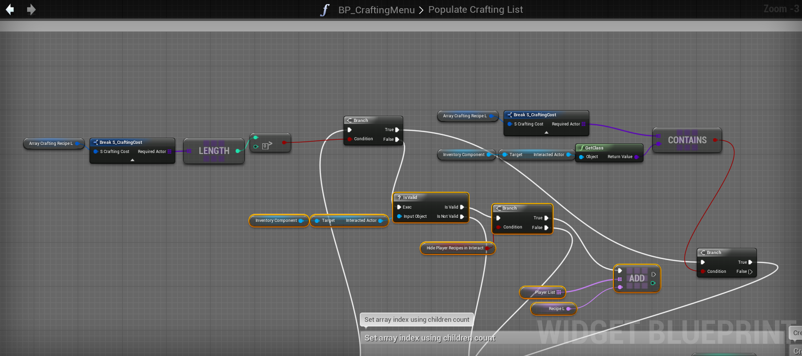 Go to the BP_CraftingMenu then to the Populate Crafting List function, next create a new local variable called PlayerList set its variable type to Name and set it to an array.
