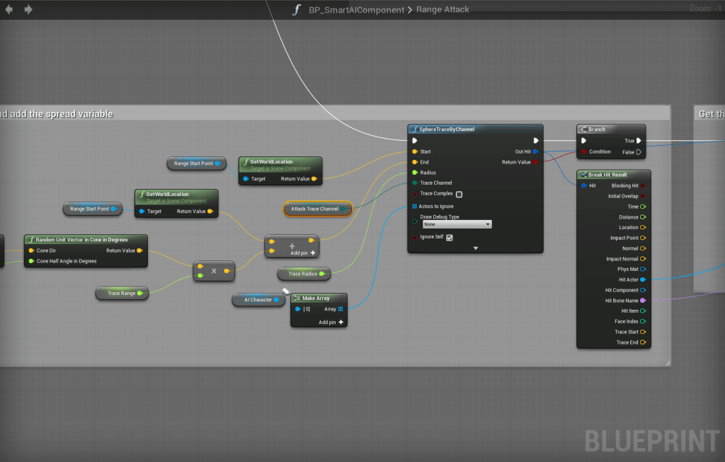 Go to the BP_SmartAIComponent then create a new variable called AttackTraceChannel and set its variable type to ETraceTypeQuery then set its default value to Weapon it should look like the image below.