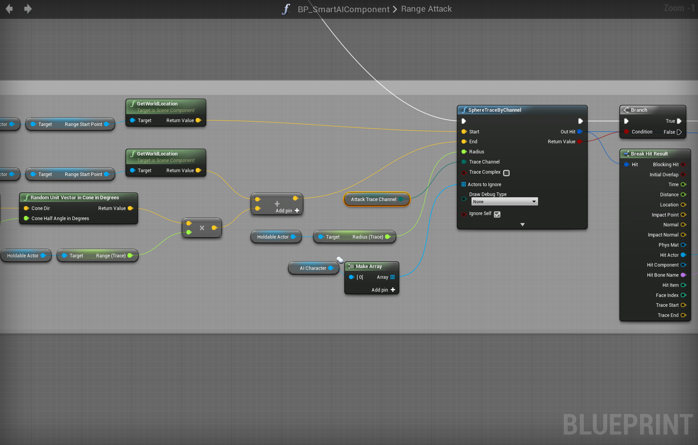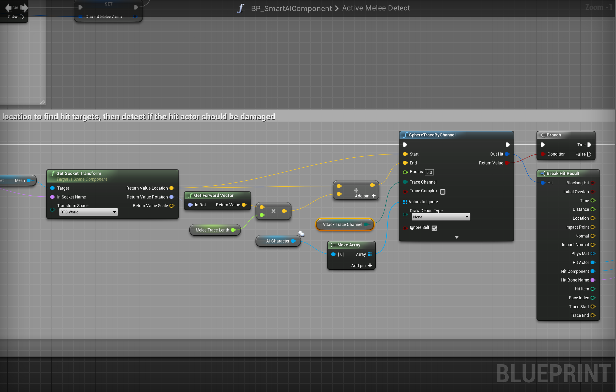 Go to the BP_SmartAIComponent then create a new variable called AttackTraceChannel and set its variable type to ETraceTypeQuery then set its default value to Weapon it should look like the image below.