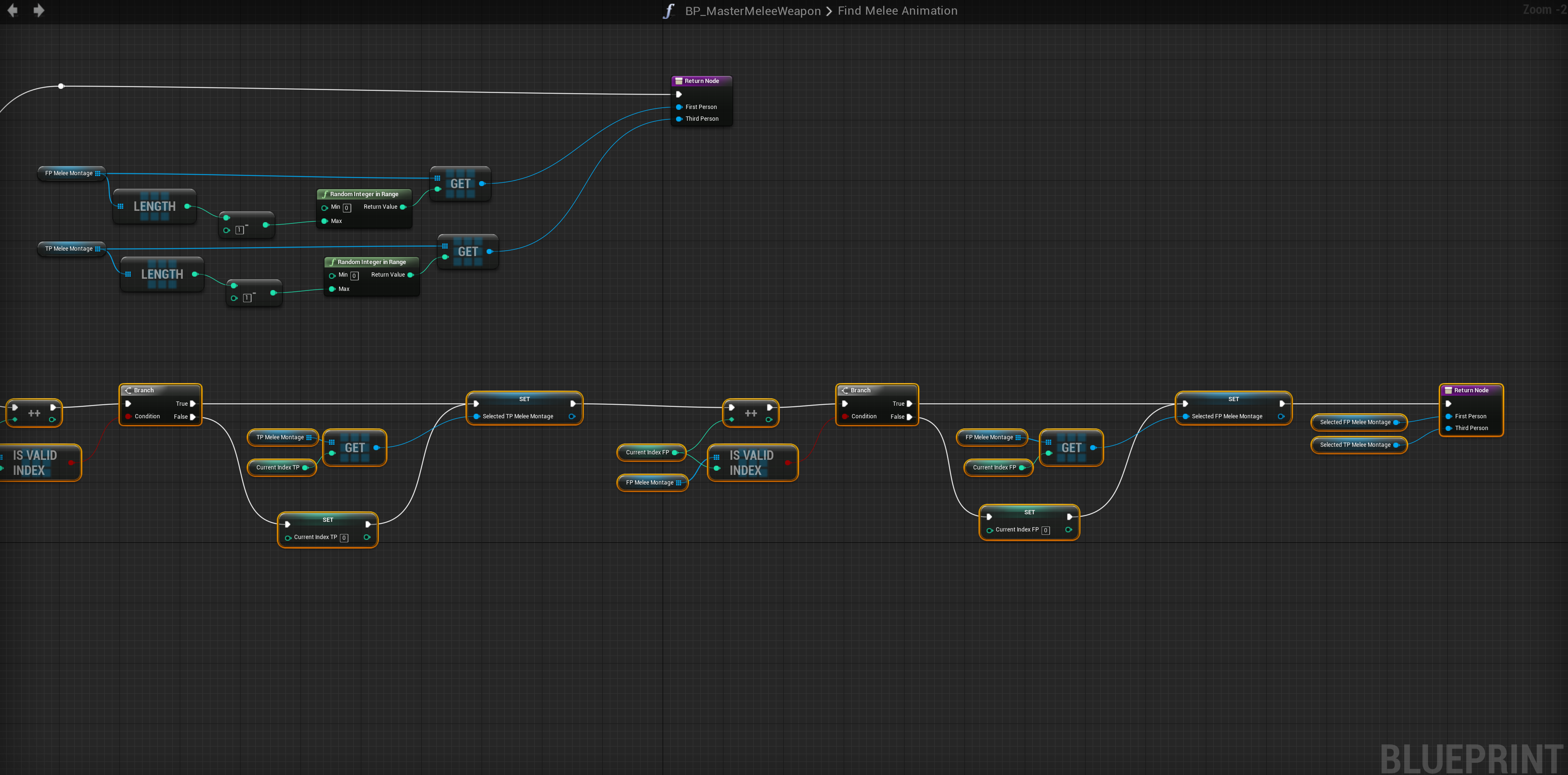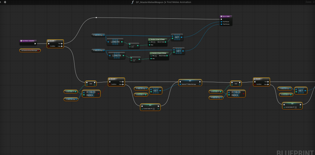 Go to the BP_MasterMeleeWeapon and open the Find Melee Animation function.
