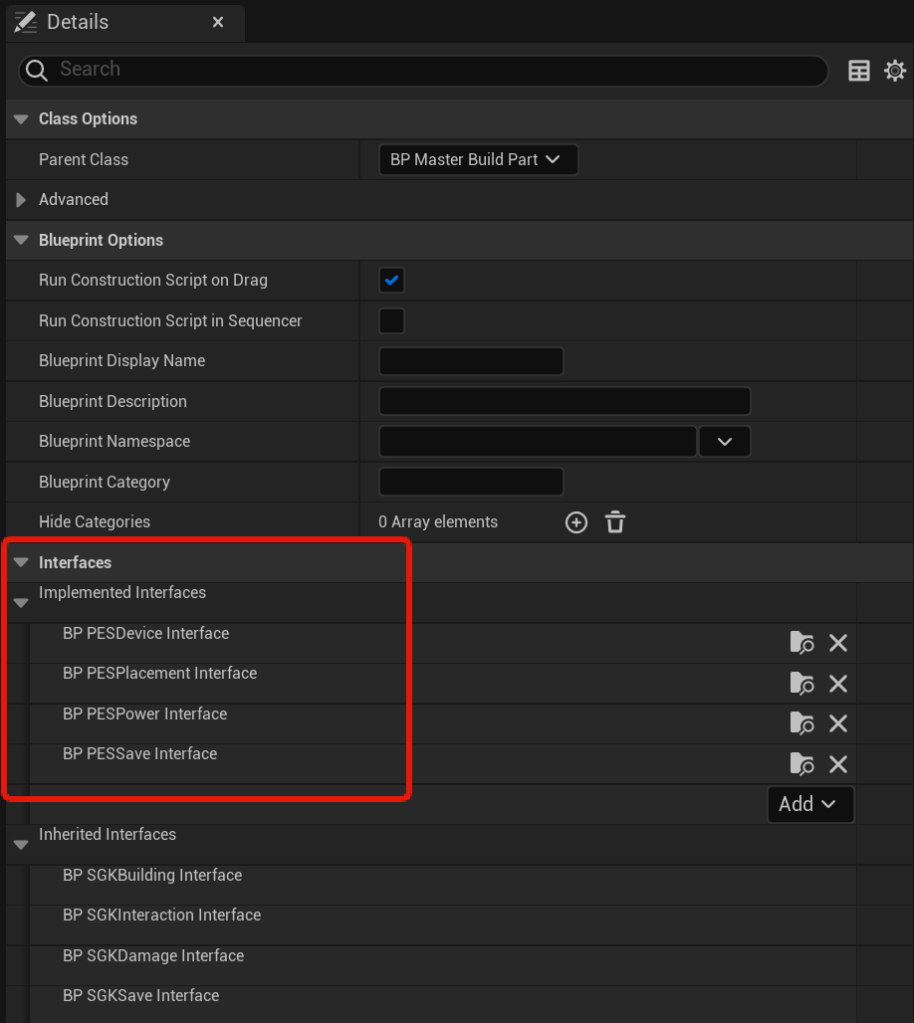 Next in the Class Settings in the Interfaces panel add the interfaces shown below.