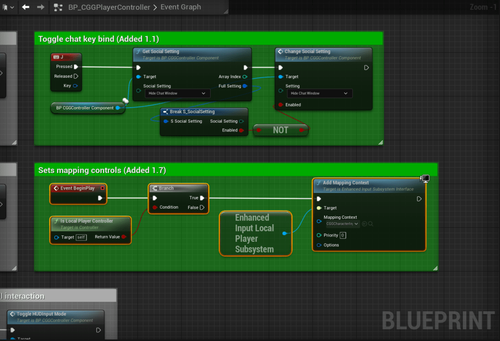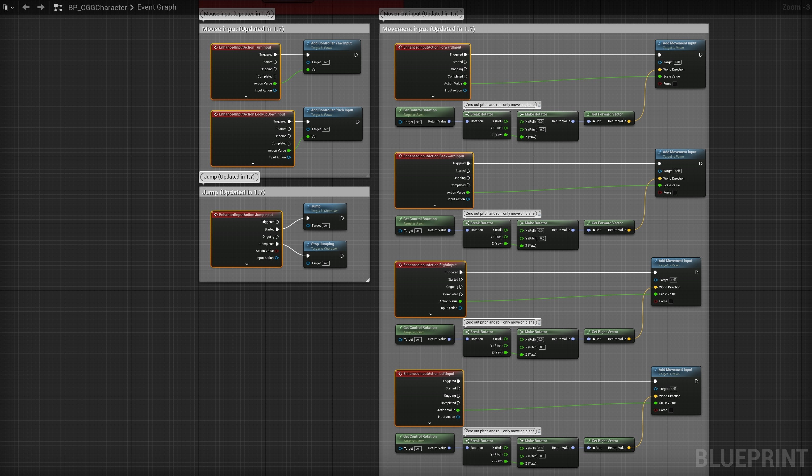 Add the highlighted nodes shown in the image below, location at the top of the image. Make sure you set the Mapping Context to CGGCharacterInputs.