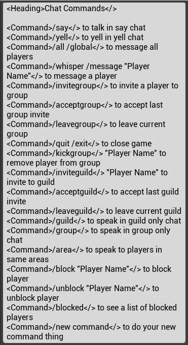So if you where to add a new command you would add to the bottom of the Help Message text. You will want to use Shift + Ctrl to go to the next line in the message before adding your new command text otherwise it will be on the same line as the previous command.