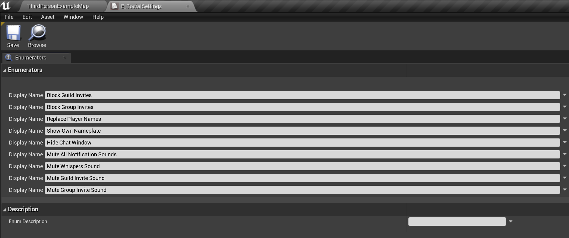 Next go to the BP_CGGControllerComponent and in the Class Default, find the Starting Social Settings and make sure none of the SocialSetting are set to E_MAX if they are set it back to the social setting that it should be. This can happen after renaming an entry on an enum.