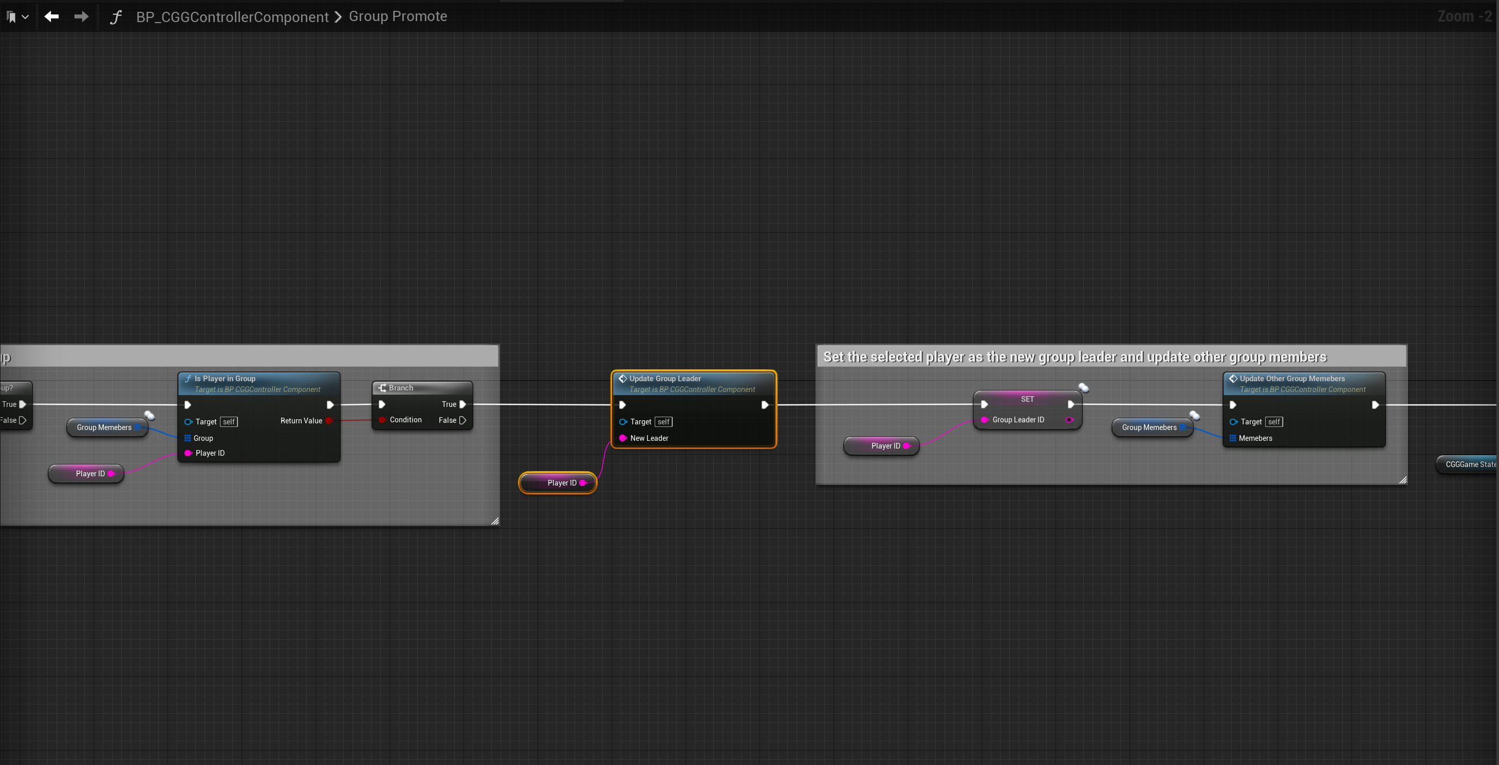 Go to the BP_CGGControllerComponent and create a new function called UpdateGroupLeader.