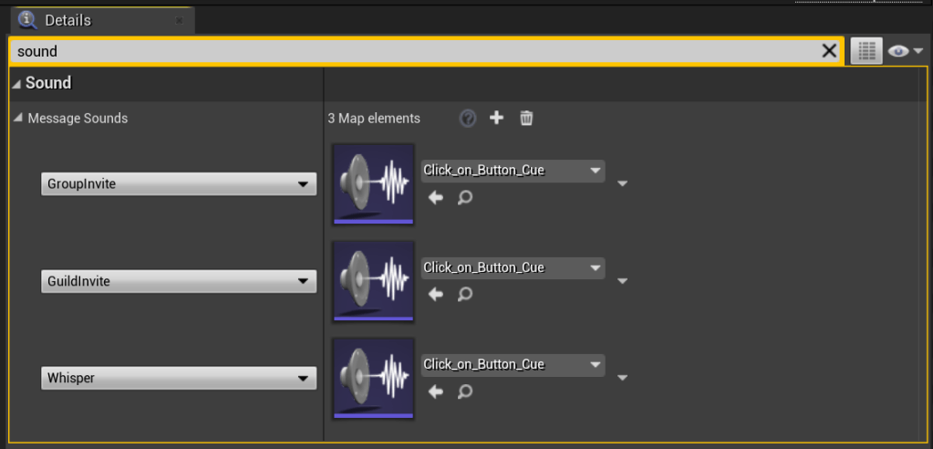 You can set notification sounds that will play when the player receives a message using the Message Sounds in the Class Defaults of the BP_CGGControllerComponenet blueprint. Here you can set the message type and the sound that will be played when that message type is received.