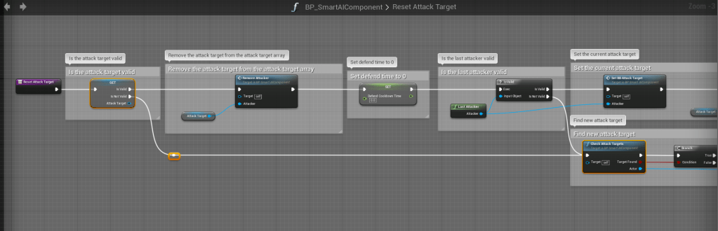Fixed AI not moving after killing target Connect the Is Not Valid pin on the Get node to the Check Attack Targets.