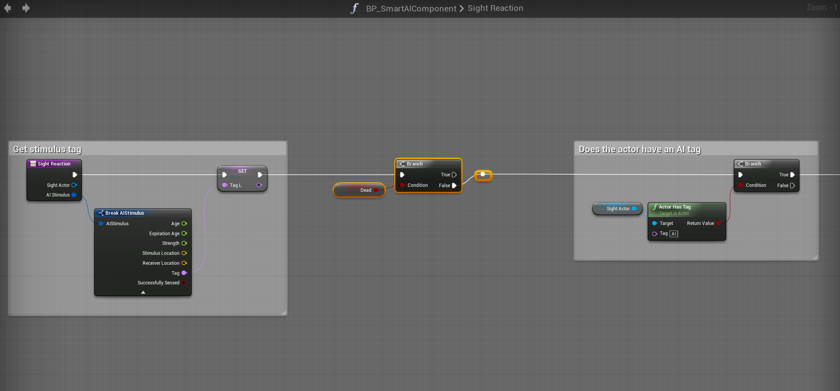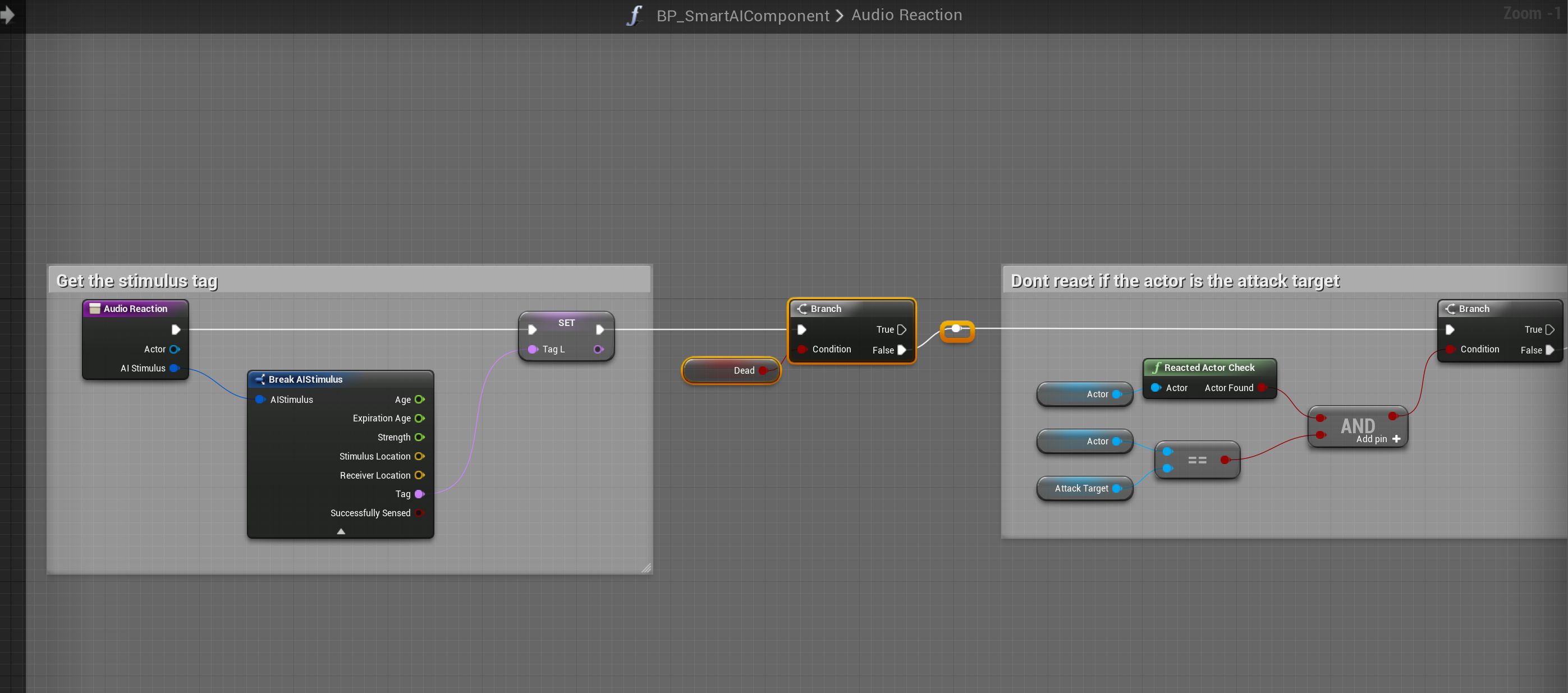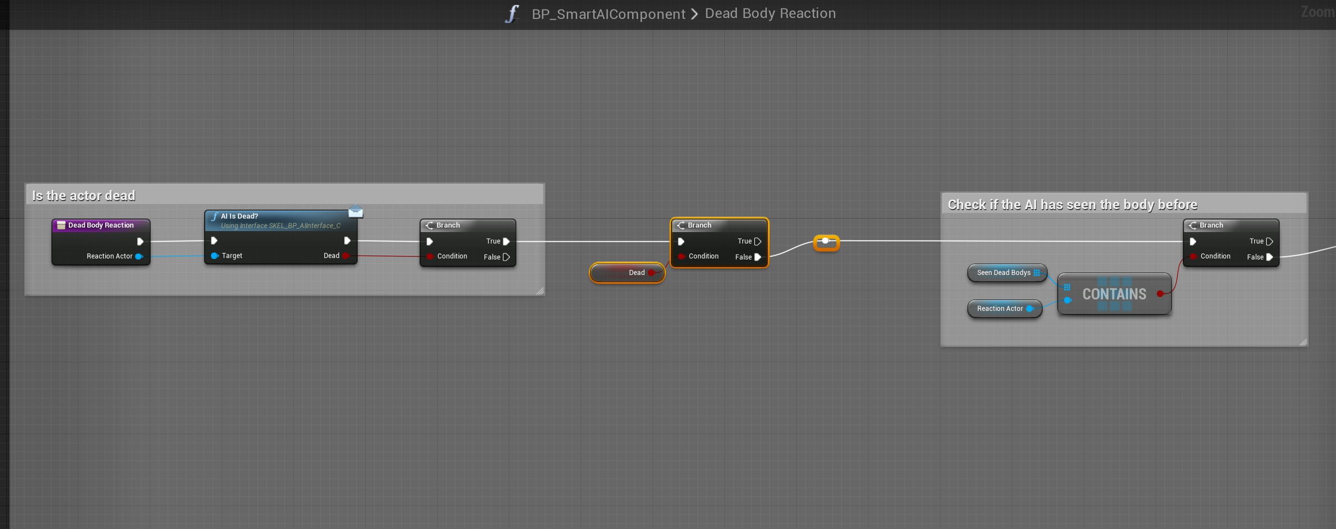 Fixed AI reacting after death Add the highlighted nodes shown in the images below, locations at the top of the screenshot.