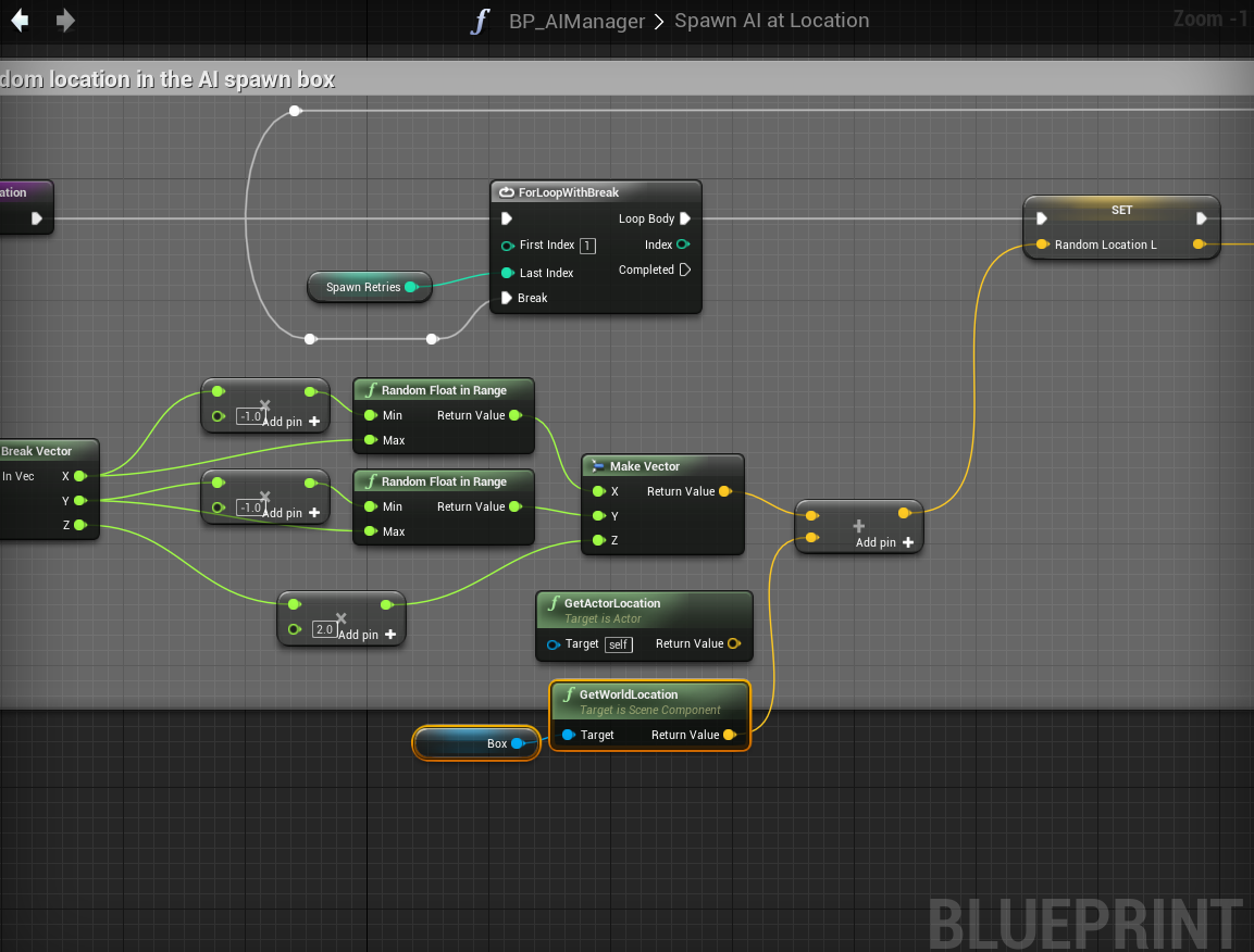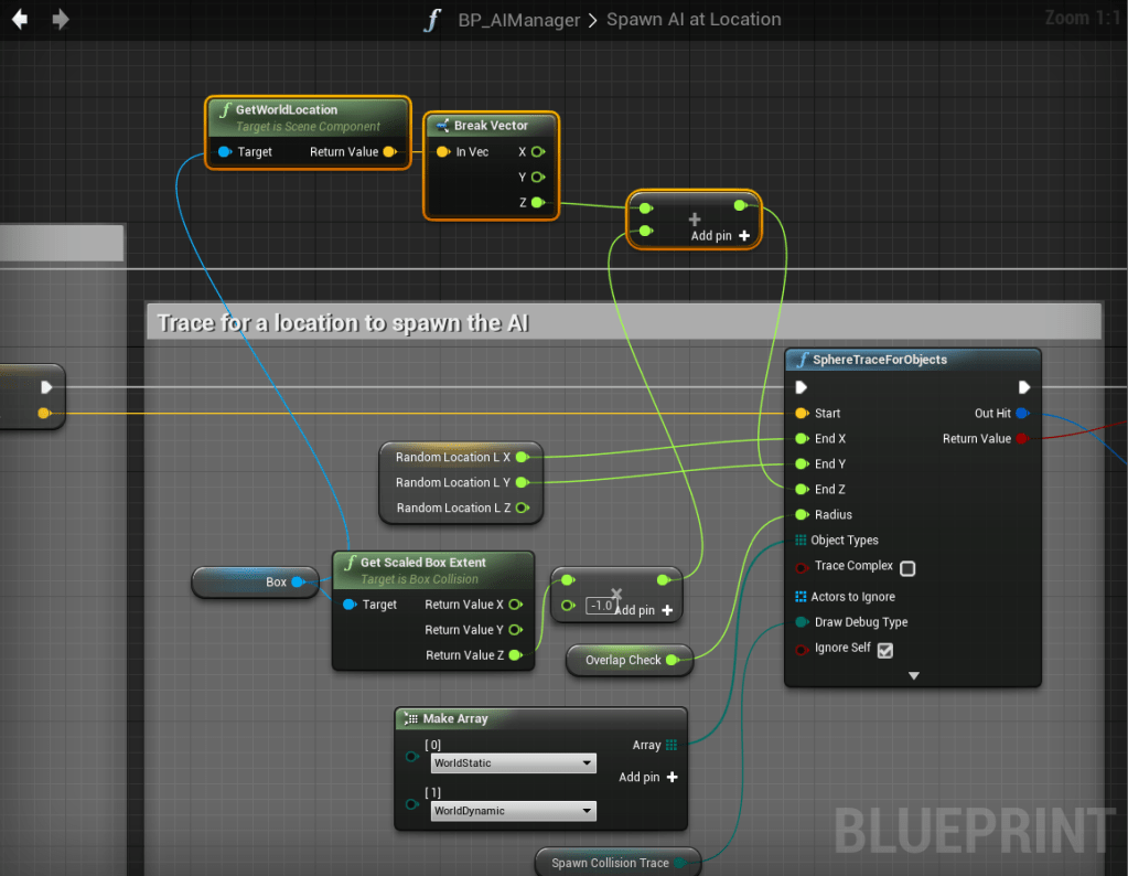 Fixed AI spawner collision check Add the highlighted nodes shown in the images below, locations at the top of the screenshots.