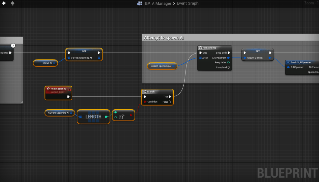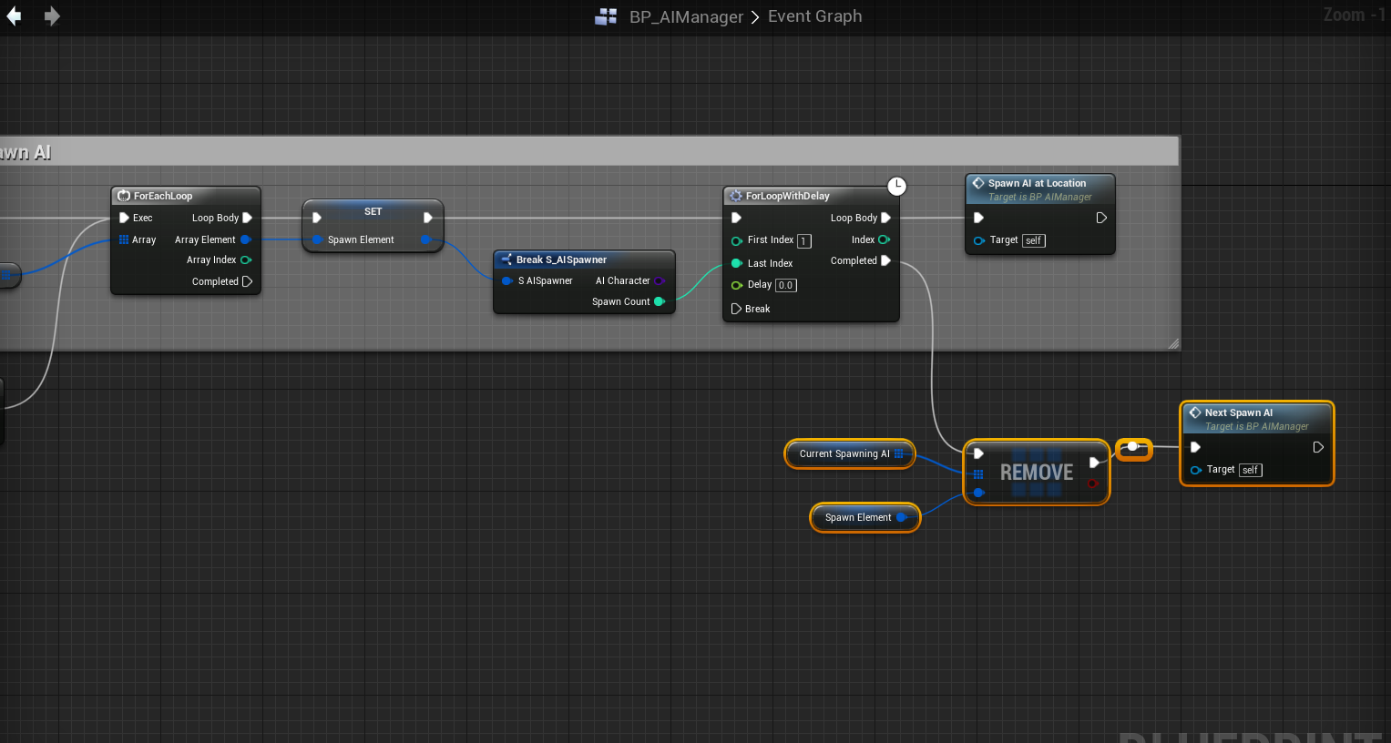 Go to the BP_AIManager and create a new variable and call it Current Spawning AI. Set its type S_AISpawner and set the variable to Array.