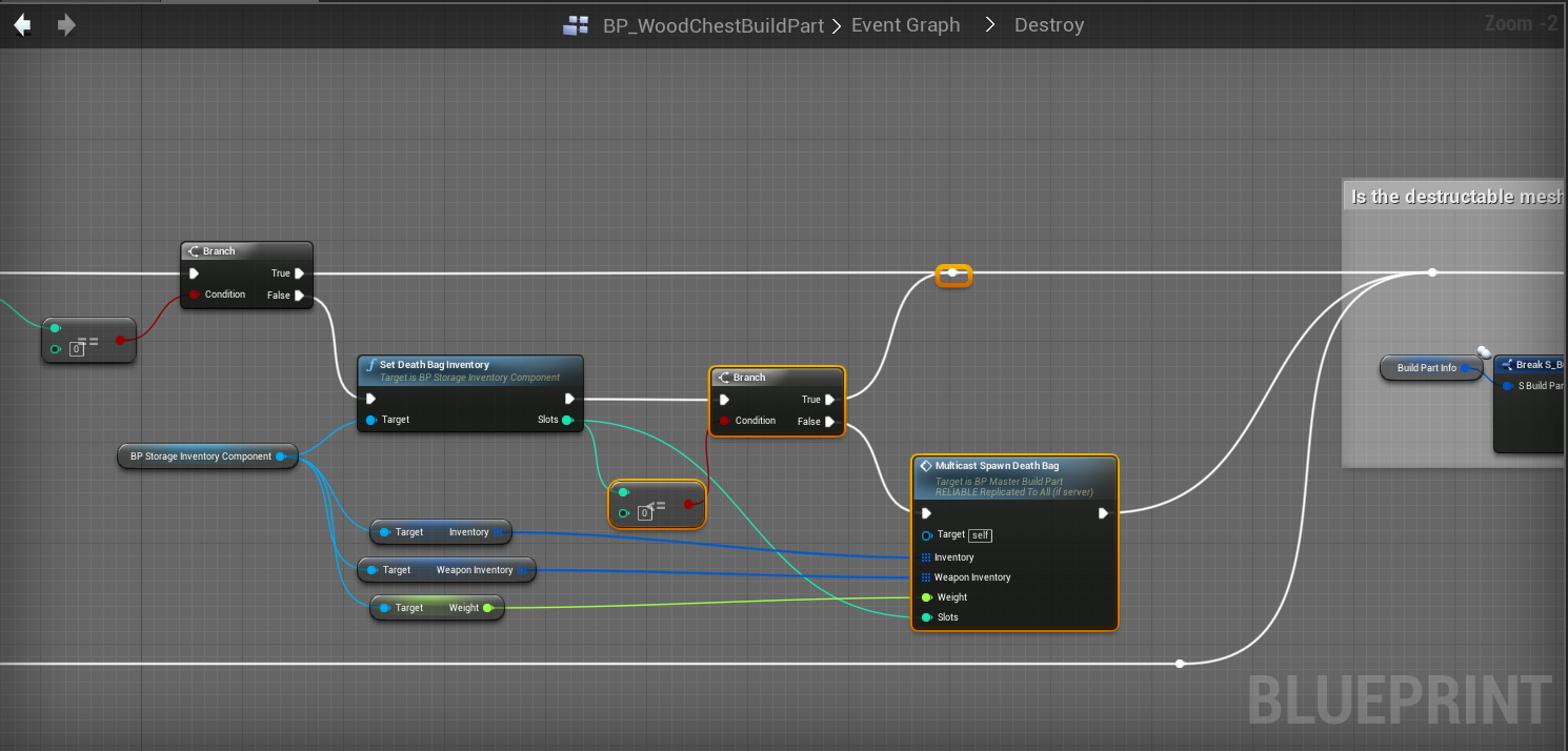 Fixed build parts dropping death bags with no slots Add the highlighted nodes shown in the screenshots, location at the top of the images.