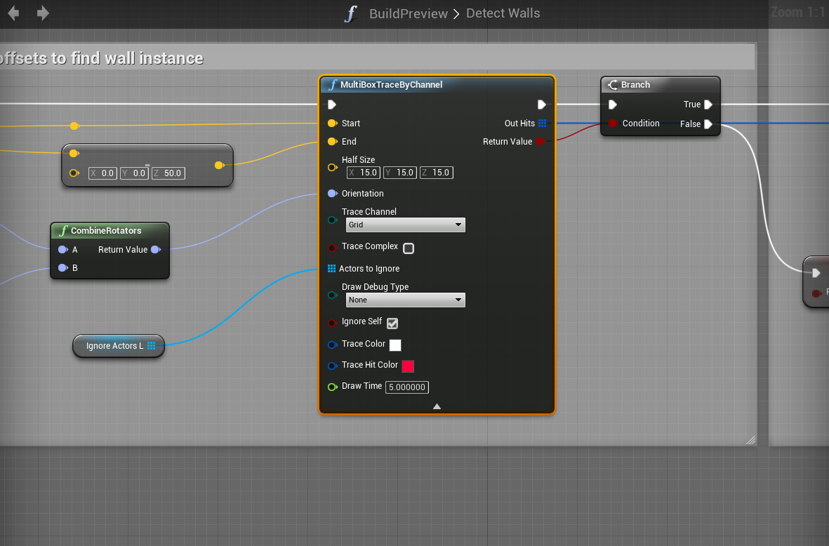 Fixed doorframe not supporting ceilings Change the Trace Channel on the highlighted node in the image below to Grid. Location is at the top of the screenshots.