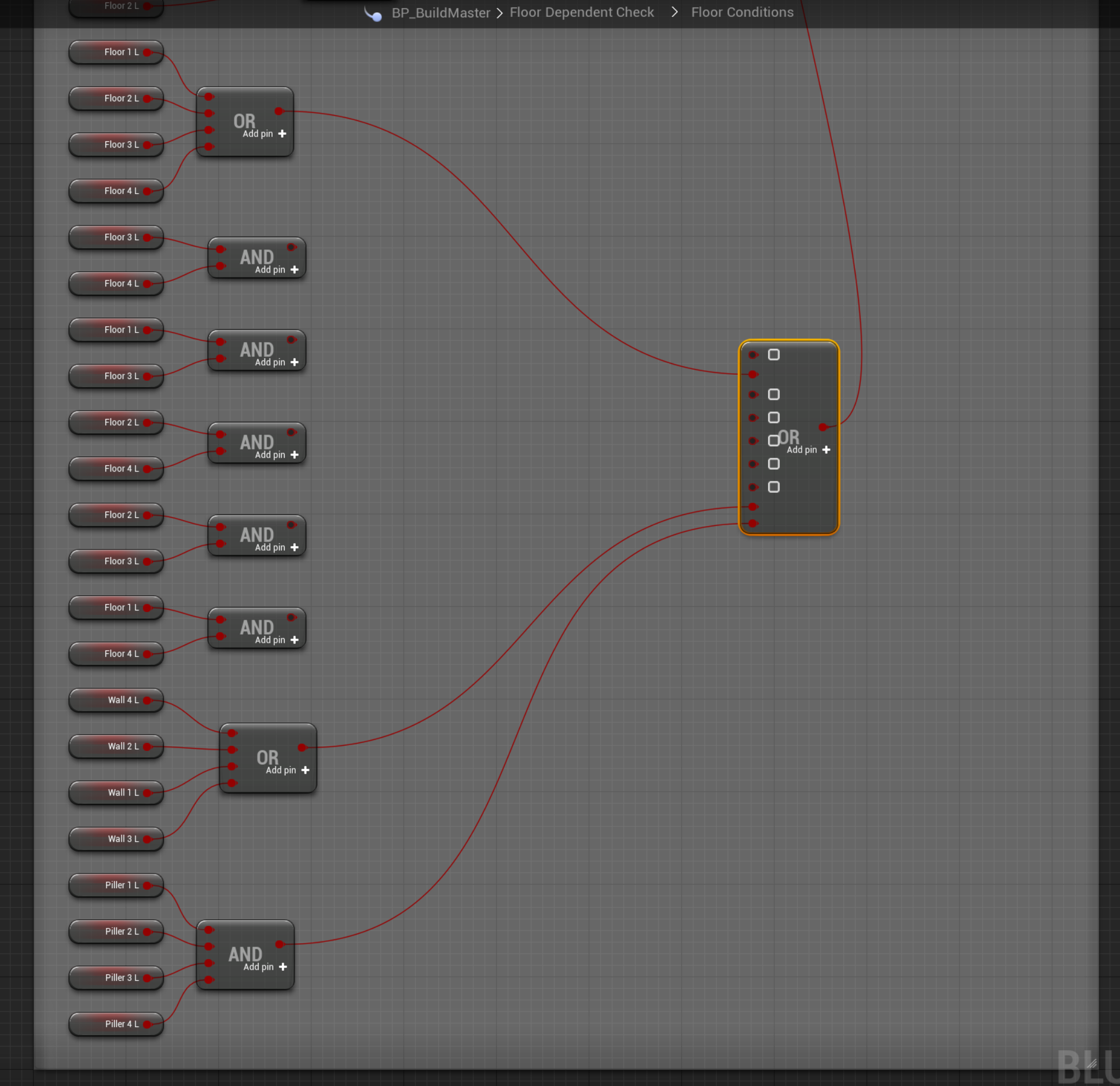 Next you need to connect/disconnect the nodes so they look like the image shown below. (You can delete the disconnected nodes and right click and remove the disconnected pins on the OR node if you would like to)