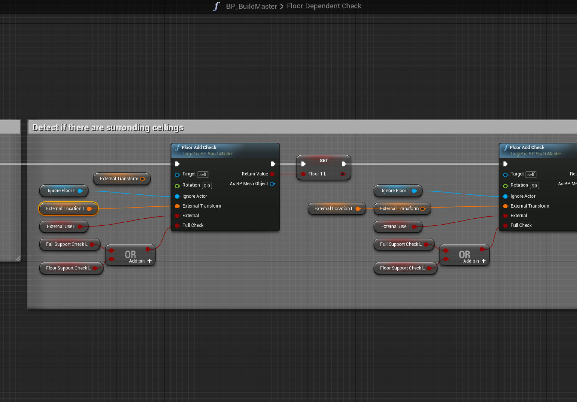 External Transform variable needs to be replaced on all the nodes with External Location L in the Floor Dependent Check function. Like shown in the image below.