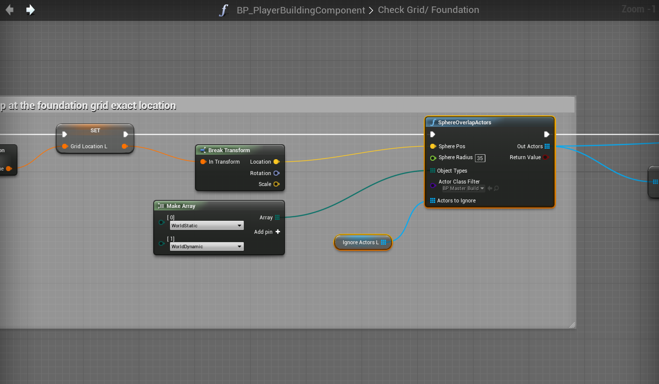 Add the highlighted Ignore Actor L array and set the Sphere Radius to 35. Location at the top of the screenshot.