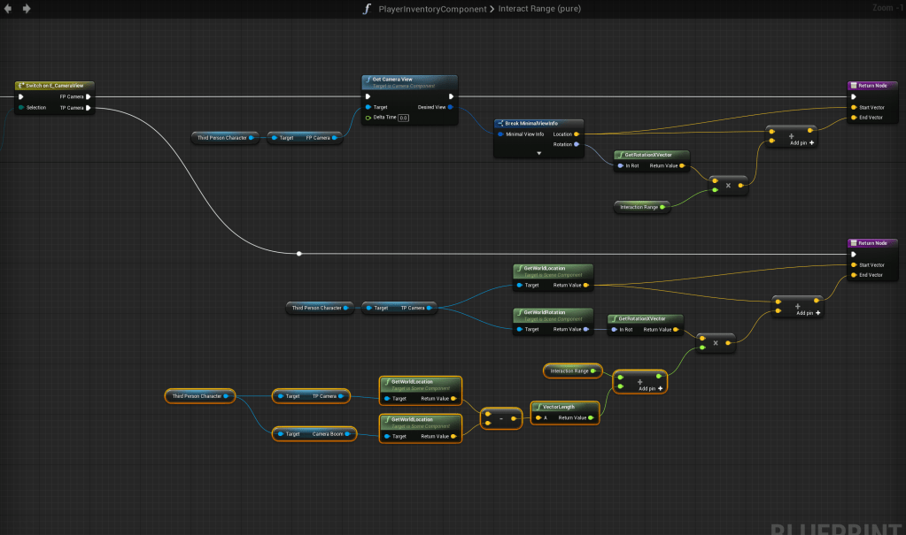Fixed Interact Range value not working in third person Add the highlighted nodes shown in the image below, location at the top of the screenshot.