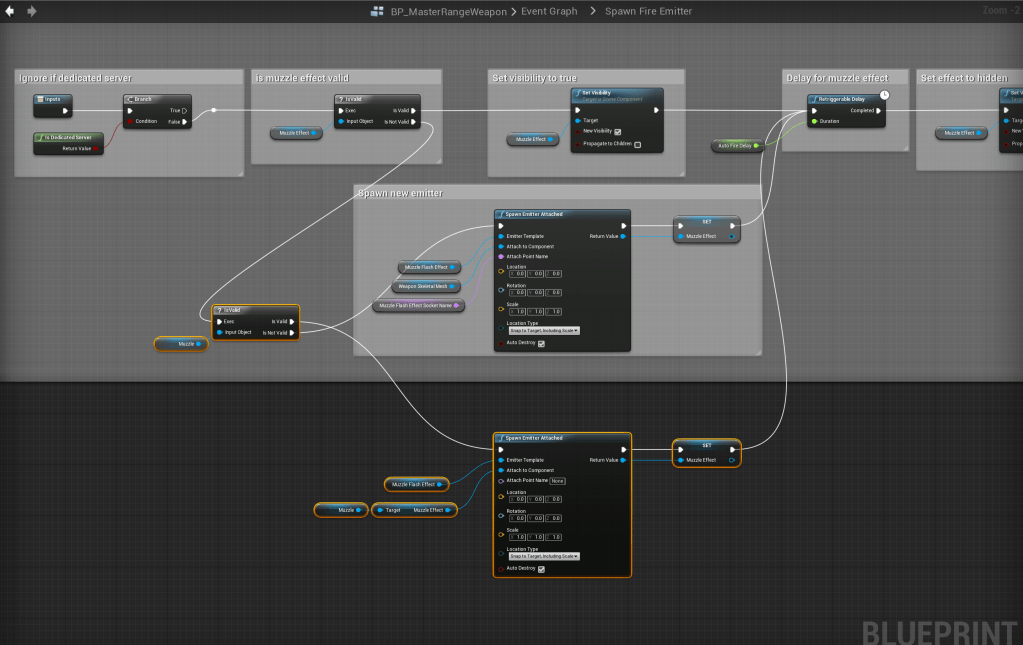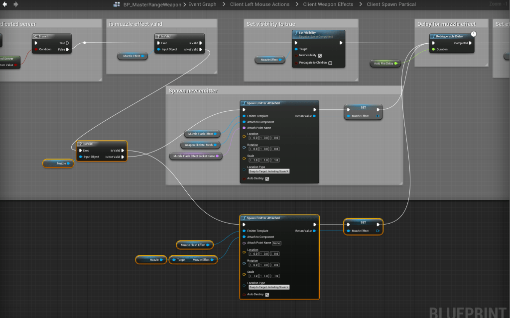 Next go to the BP_Silencer and select the MuzzleEffect component and move it to the end on the silencer as this will be where the muzzle flash effect will be located when the silencer is attached to the weapon. It should look like the image below, If you have any custom muzzle attachments you will also want to do this in there bps as well.