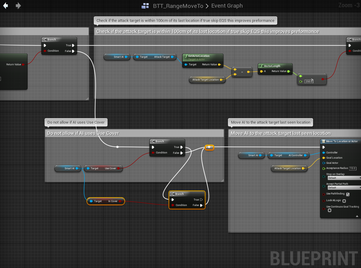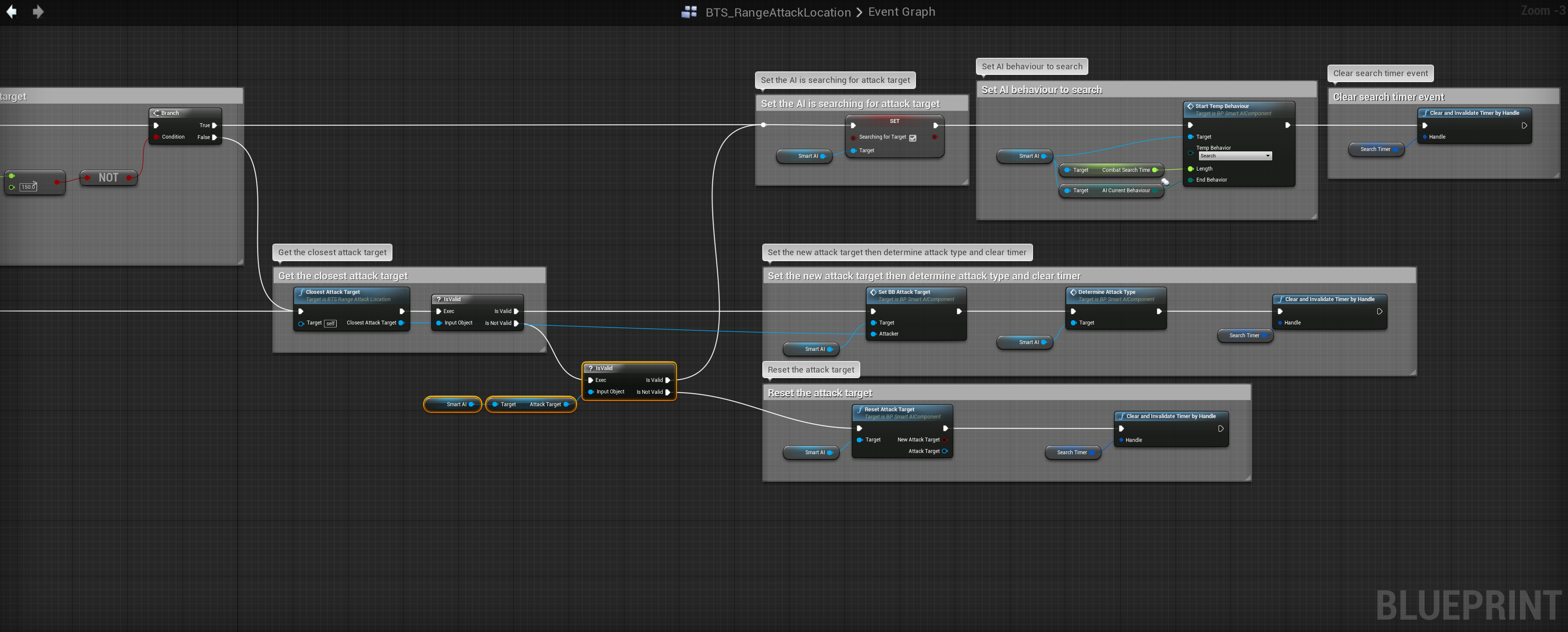 Fixed issues with range attacking Add the highlighted nodes shown in the image below, location at the top of the screenshots. Then go to the BP_MasterAIController and copy the video