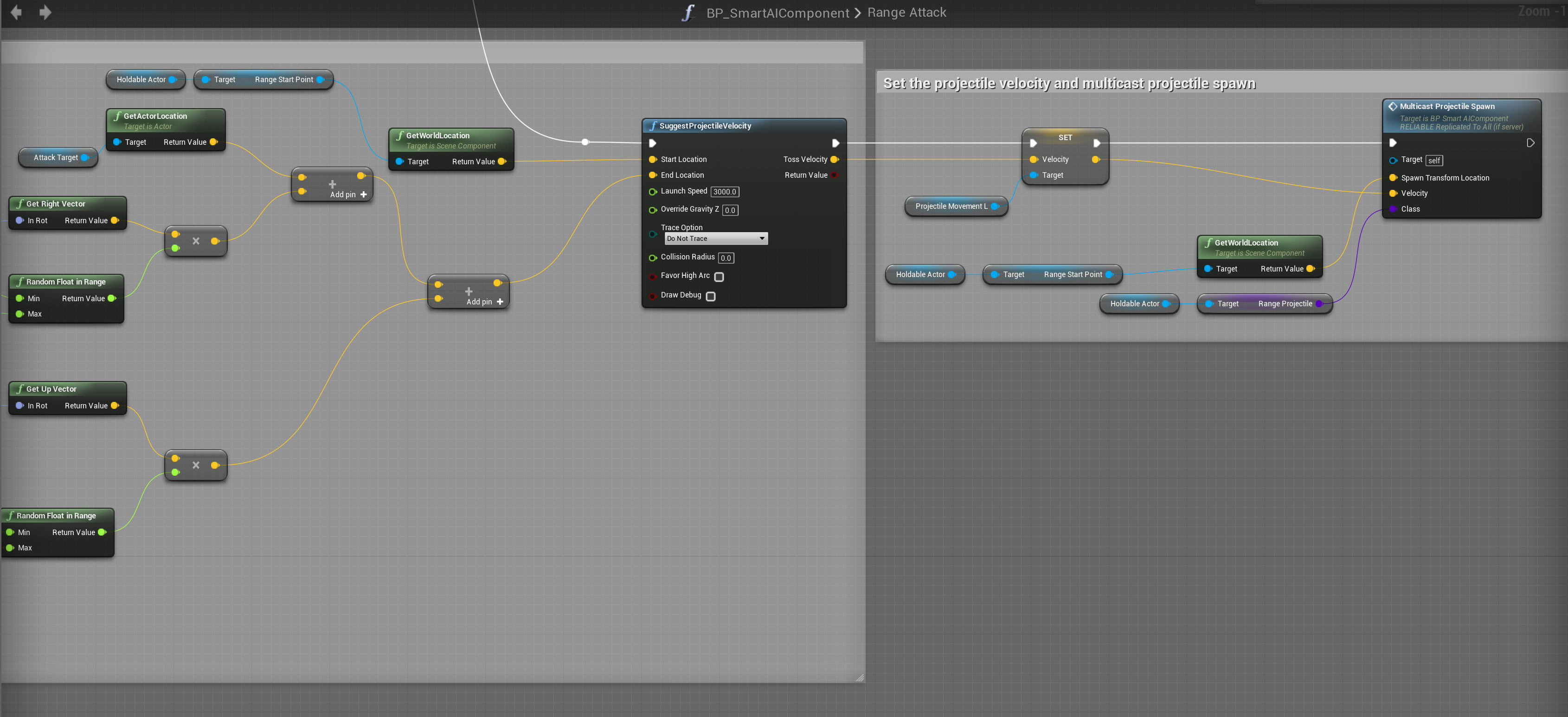 Go to the BP_SmartAIComponent and create a new variable called Projectile Speed and set the variable type to float and set the default value to 3000 and tick on Instance Editable.