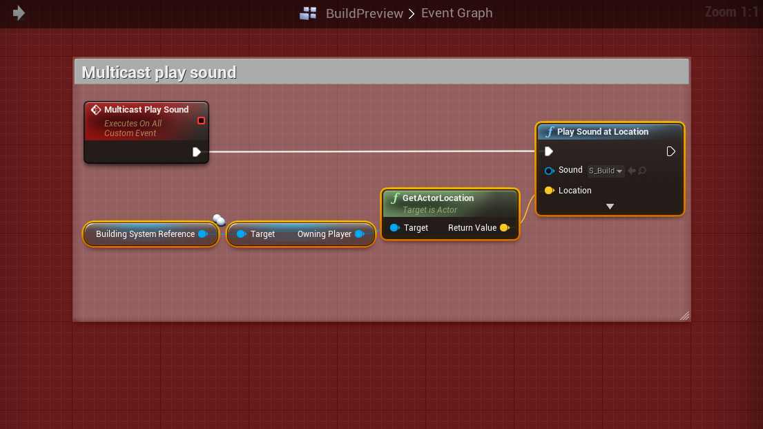 Fixed placement sound Add the highlighted nodes shown in the image below, location at the top of the screenshot.