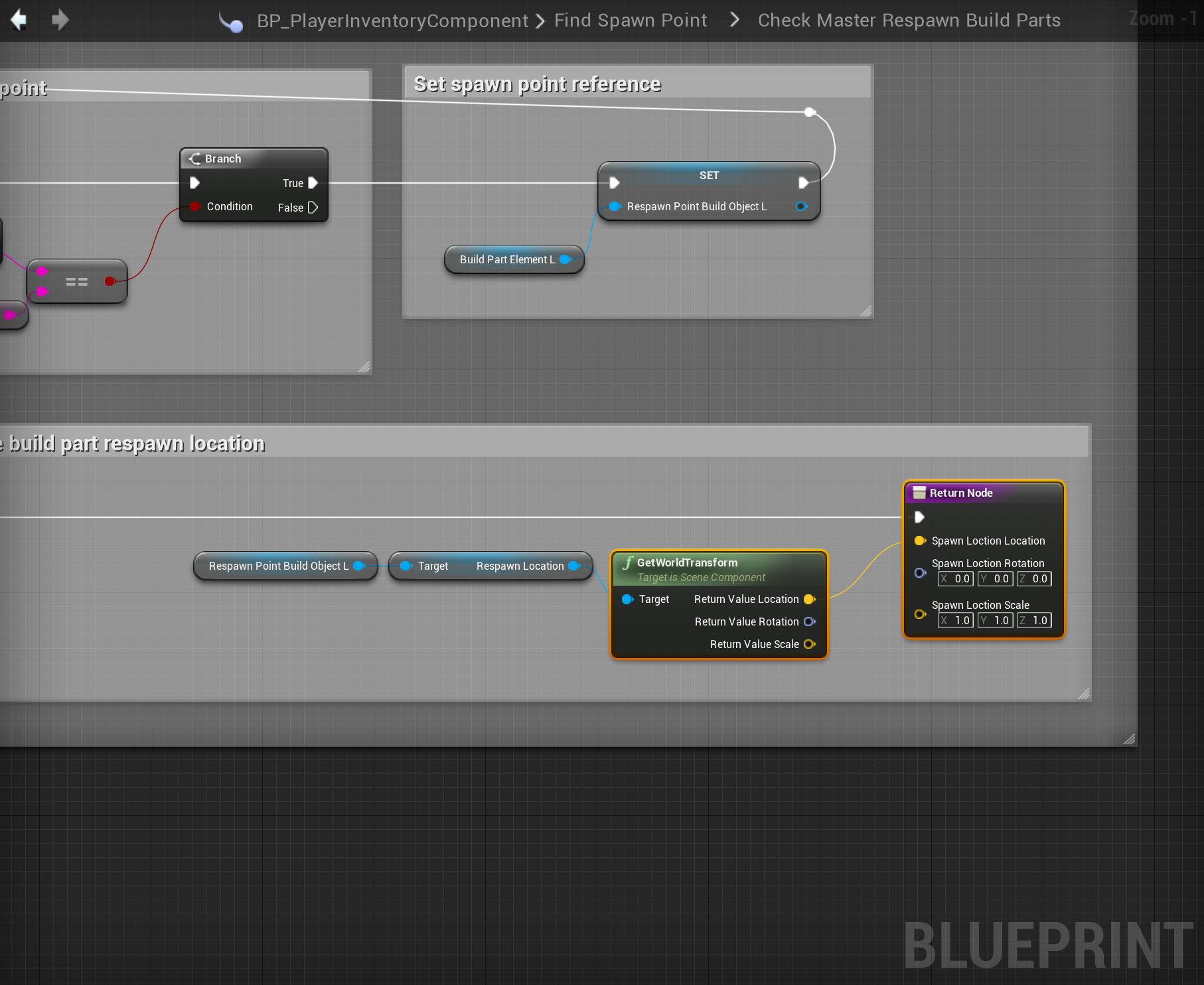 Fixed spawn point rotation issue Disconnect the rotation pins on the highlighted nodes shown below, locations at the tops of the screenshots.