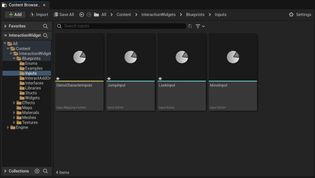 Go to the Inputs folder, right click and create a new InputMappingContext call this DemoCharacterInputs.
