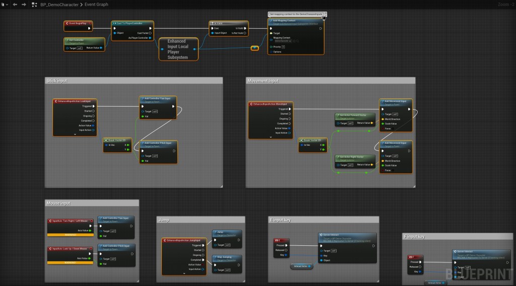 Next go to the BP_DemoCharacter and copy the image below make sure you have the same highlighted nodes.