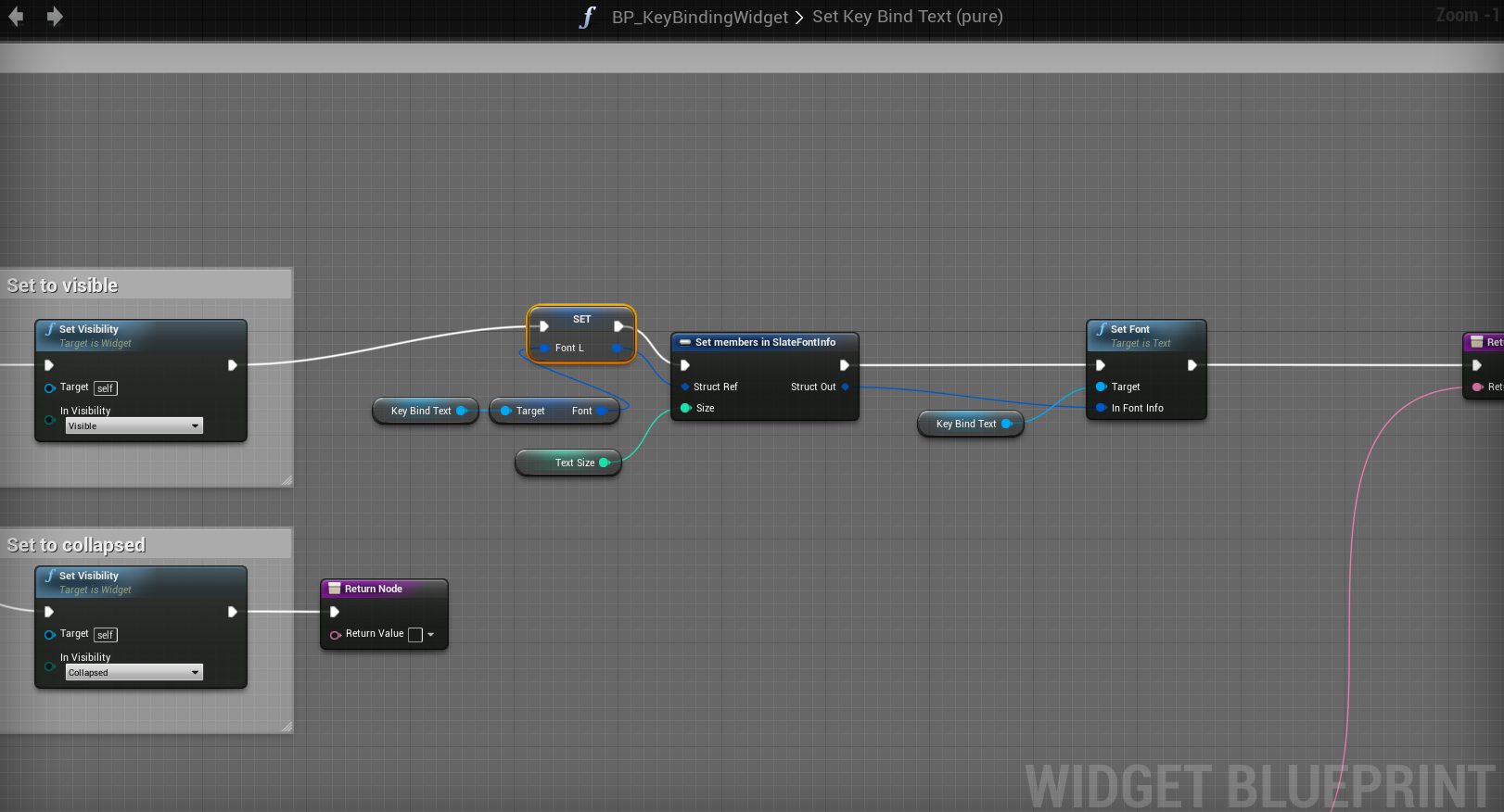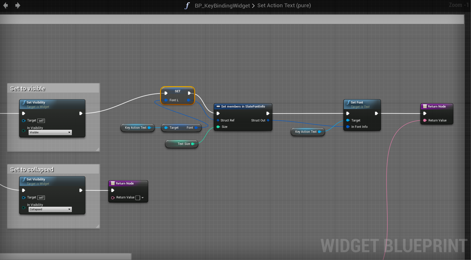 Go to the BP_KeyBindingWidget and then to the Set Key Bind Text function and create a new local variable called FontL and set type to Slate Font Info and copy the image below.