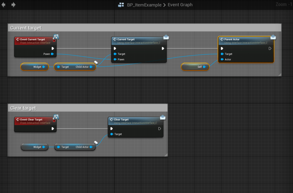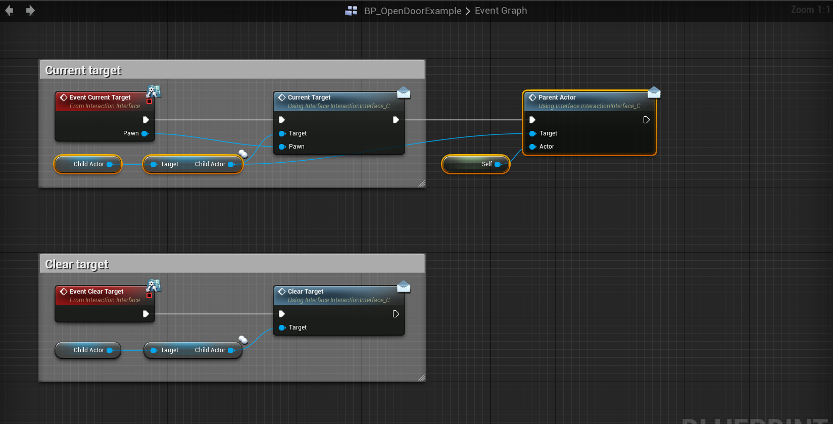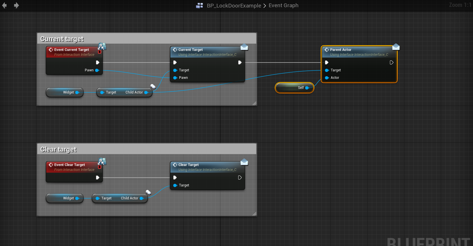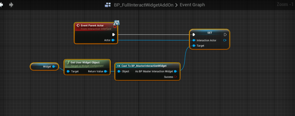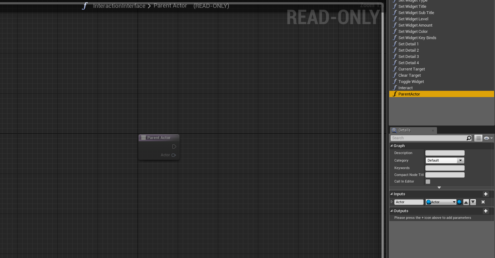 Go to the InteractionInterface and create a new function called ParentActor and add and input, variable type Actor and call it Actor then compile and save. It should look like the image below when done.