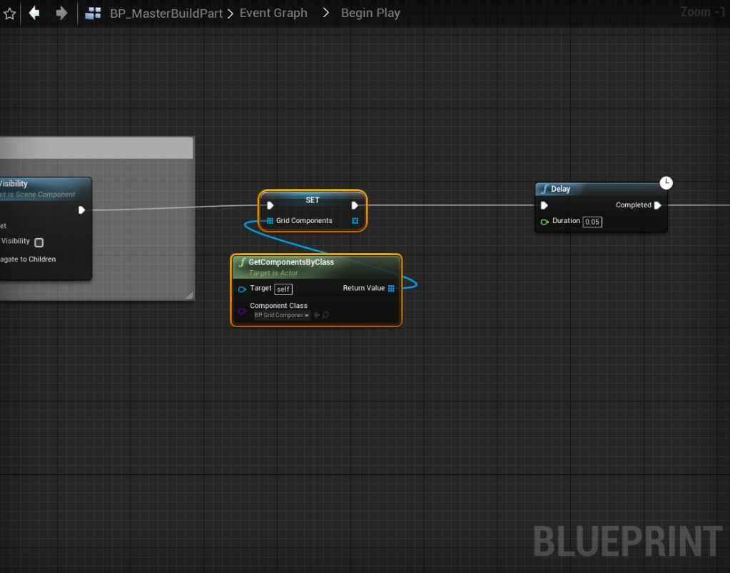 Next go to the BP_MasterBuildPart and create a new variable called GridComponents and set it to variable type BP_GridComponent then set it to an array.