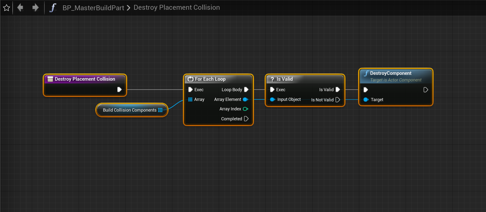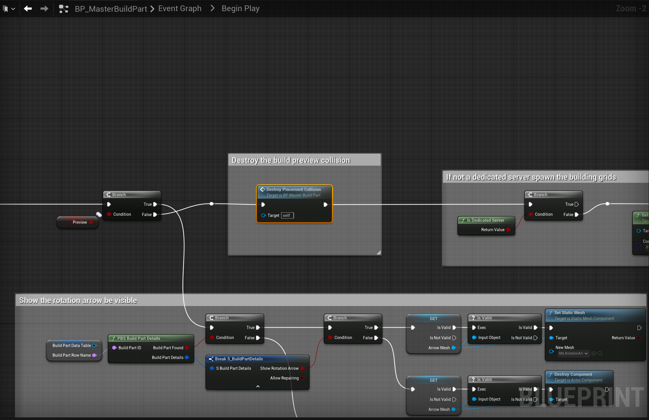 PBS V2 – Fixed build placement collision not always removing correctly Go to the BP_MasterBuildPart and create a new function called DestroyPlacementCollision, then copy the image below. Add the highlighted nodes shown in the images below, locations at the top of the images.