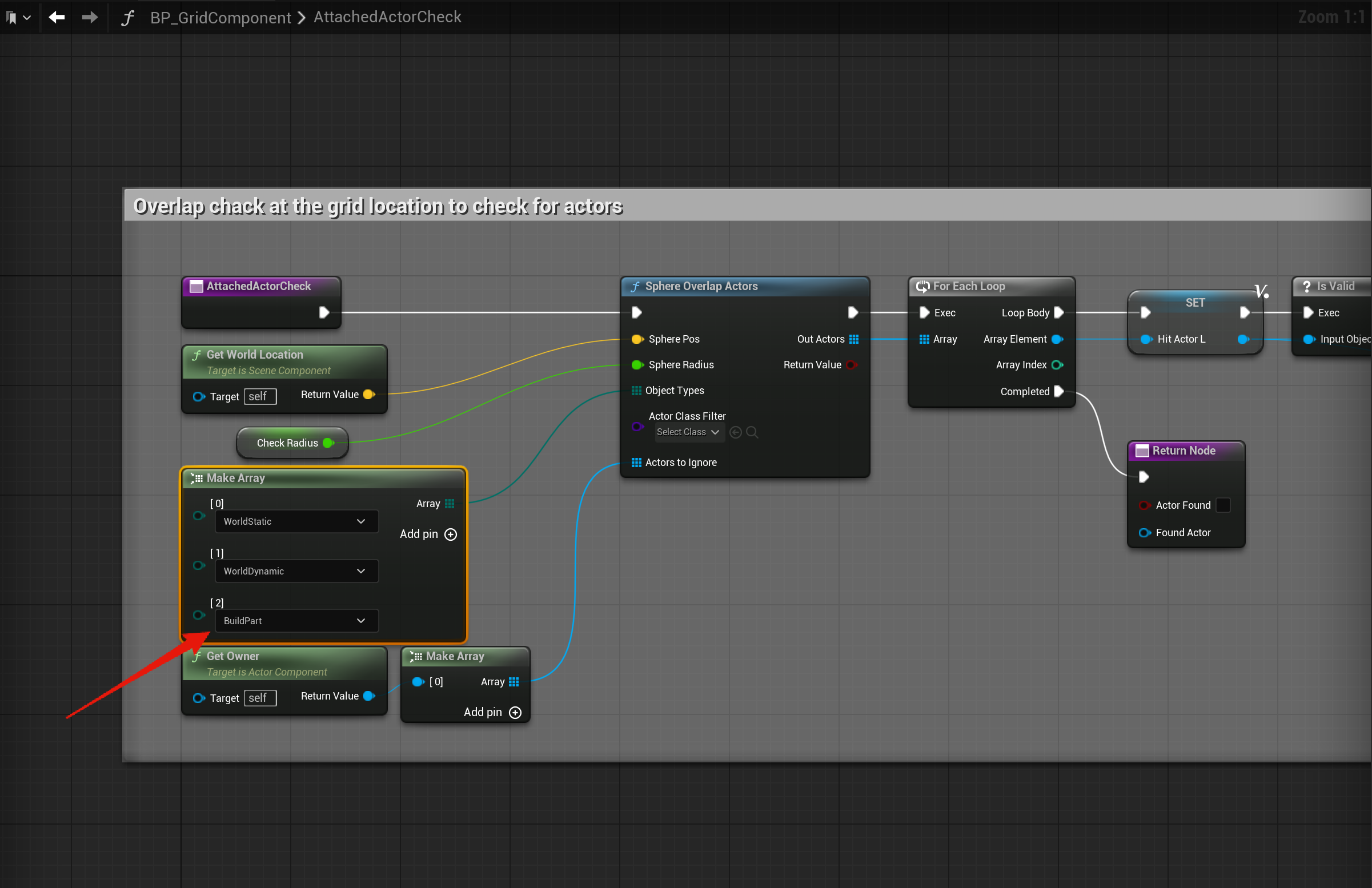 Next go to the BP_GridComponent and then to the Attached Actor Check and make sure the highlighted node in the image below and copy its settings in your project.