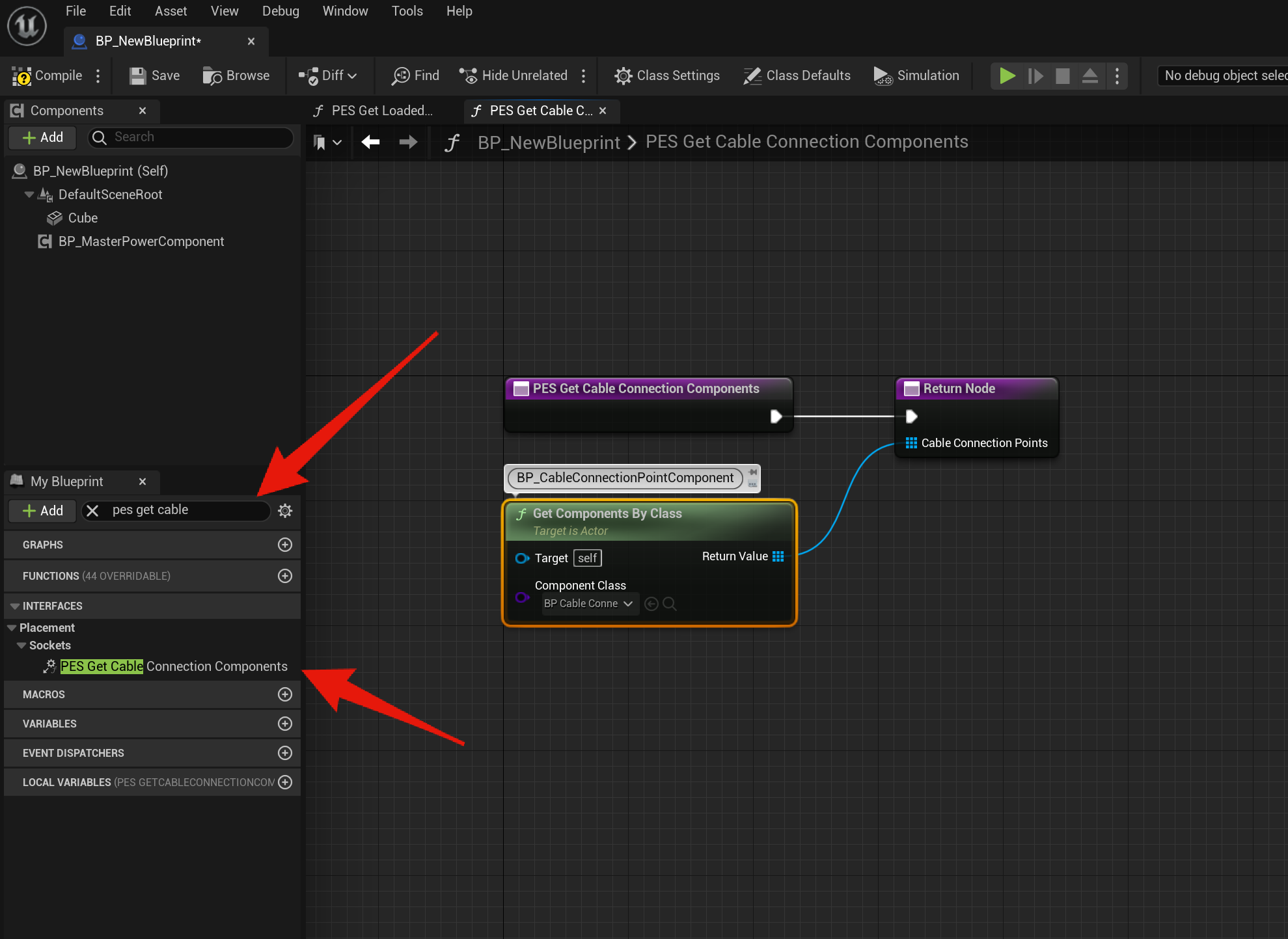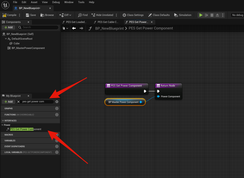 Start by going to your blueprint and in the Components panel click the Add button and add the BP MasterPowerComponent.