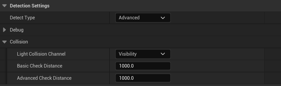Next go to the BP_LightDetector then go to the Class Defaults and find the settings shown in the image below, make sure these settings are the same in your project.
