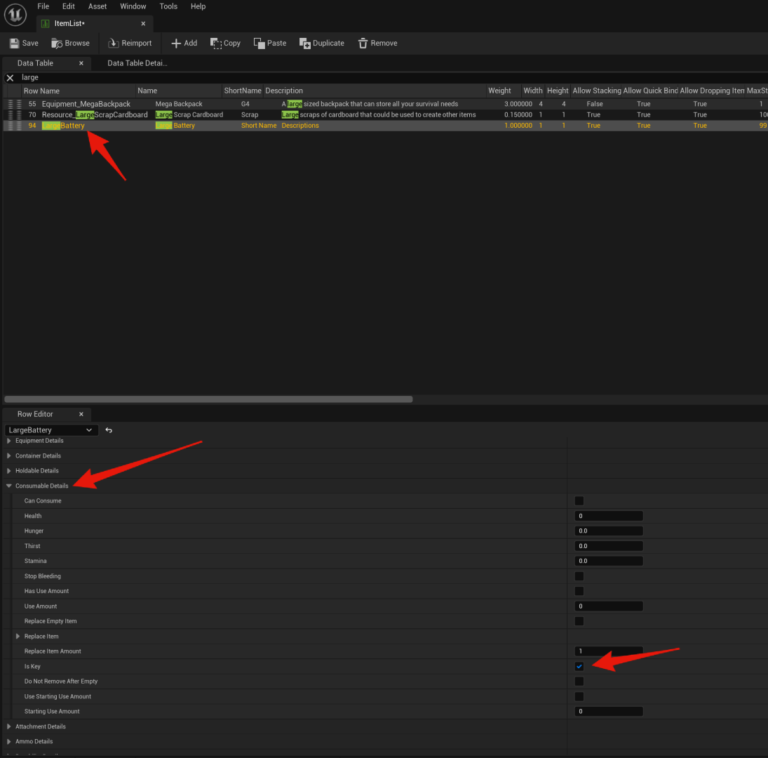 You’ll need to repeat the ItemList and BuildPartList steps for any other battery items that you want to store their battery power when picked up.