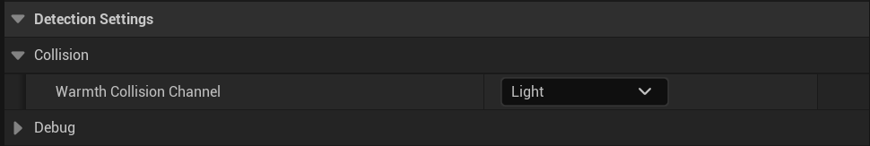 Next go to the BP_WarmthDetectorComponent then go to the Class Defaults and find the settings shown in the image below, make sure these settings are the same in your project.