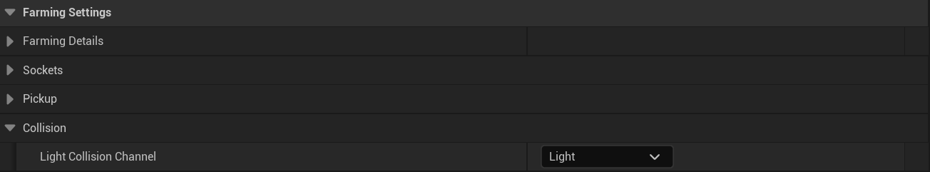 Below are the settings for the Player Farming System’s collision presets.