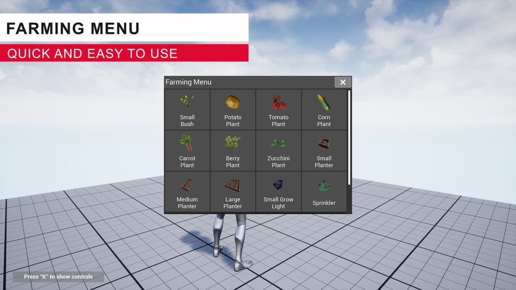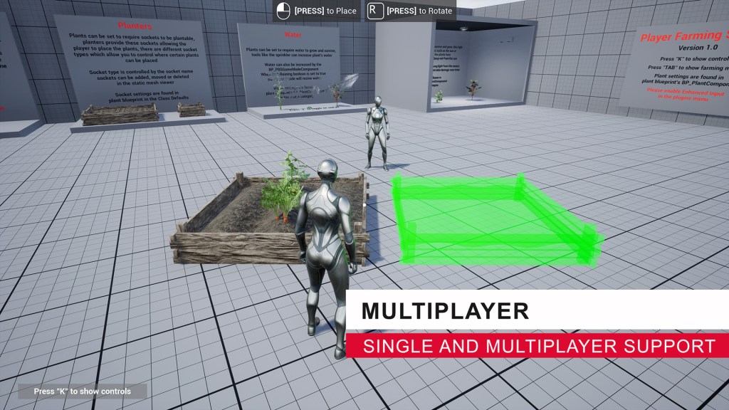 The Player Farming System is the fast and easy way to add multiplayer farming to your projects! It includes extensive customization options, so you can fine-tune the behavior of your plants. Additionally, it boasts an advanced placement system that allows for snapping and non-snapping placement of plants, planters, and tools. The plant info panel UI is clean, easy-to-read, and can be customized using Unreal’s widget system. Many other features are included, which you can find listed below!