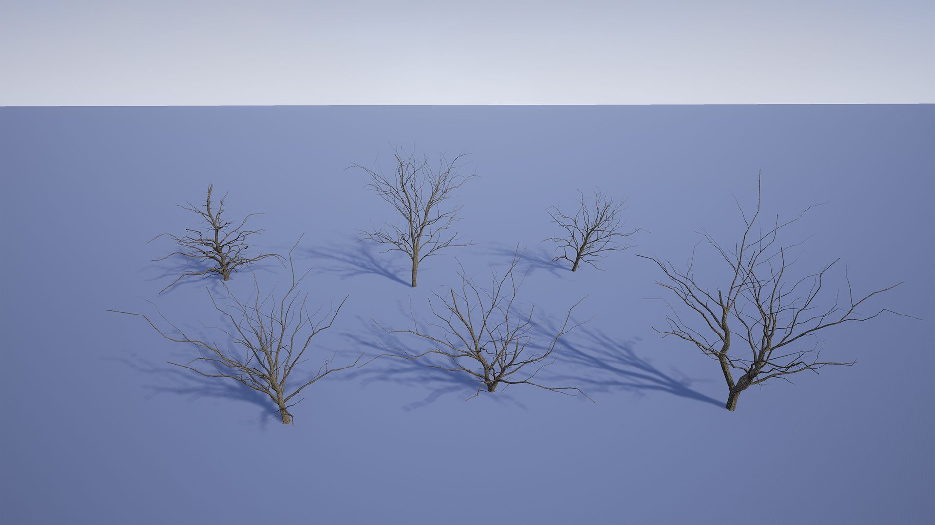 Using an easy to use custom wind system you can get any type of look you like for your bushes. Each mesh has 2 – 3 LODs and simple collision. Included are 3 versions of each bush with 6 unique dead bushes.