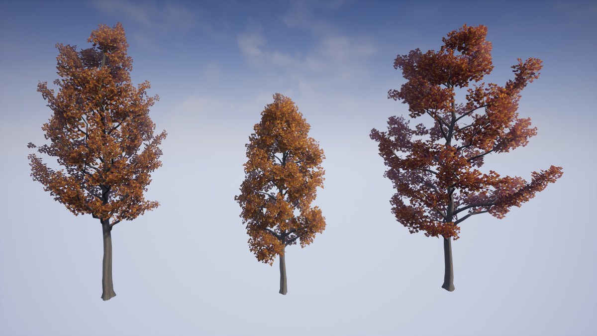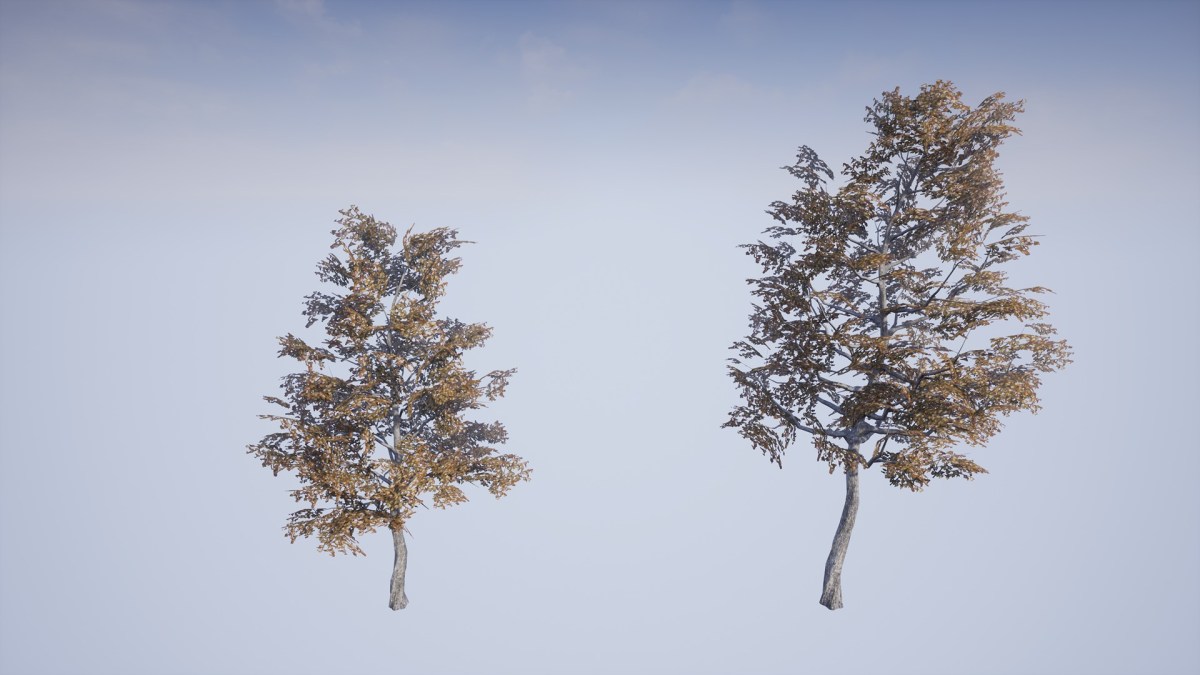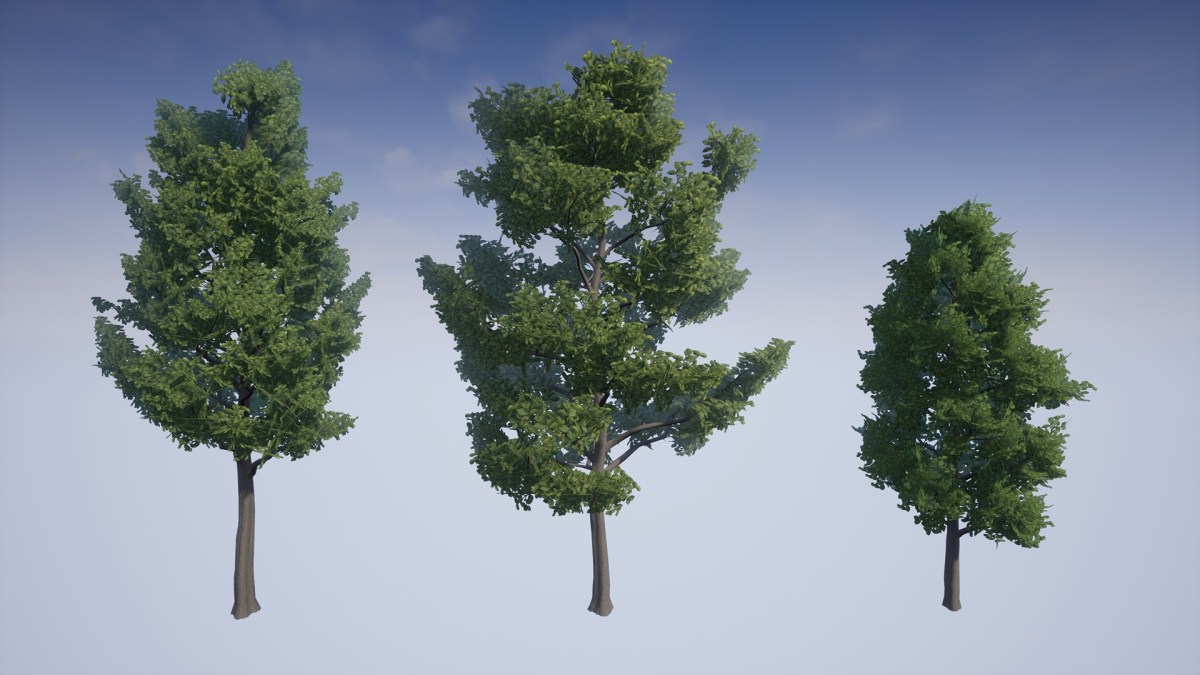 43 Realistic tree meshes, each with 4 LODs, Color variation, simple collision and a fully customisation wind system so you can get the best look for your projects and games!
