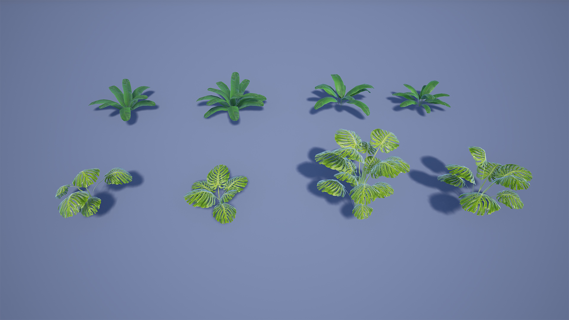 35 Realistic meshes, each with 3 LODs, Color variation, simple collision and a fully customizable wind system so you can get the best look for your projects and games!