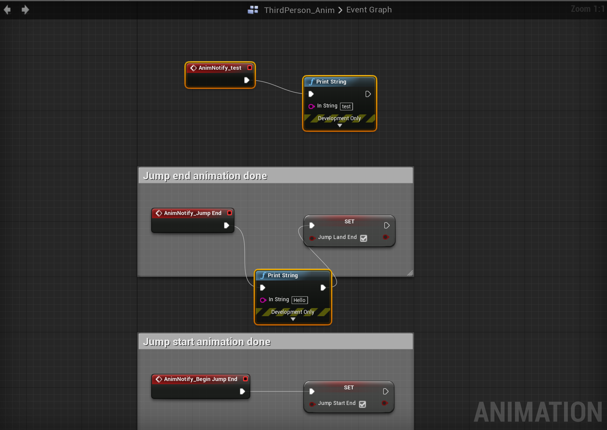 Removed Hello print sting from anim bp Delete the highlighted nodes shown in the image below, location at the top of the screenshot.