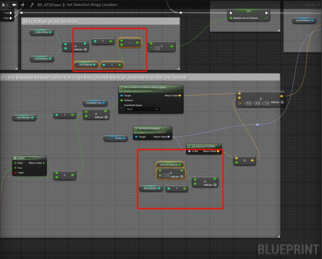 Next open the SetUnitsLocation function and add the highlighted nodes shown in the image below.