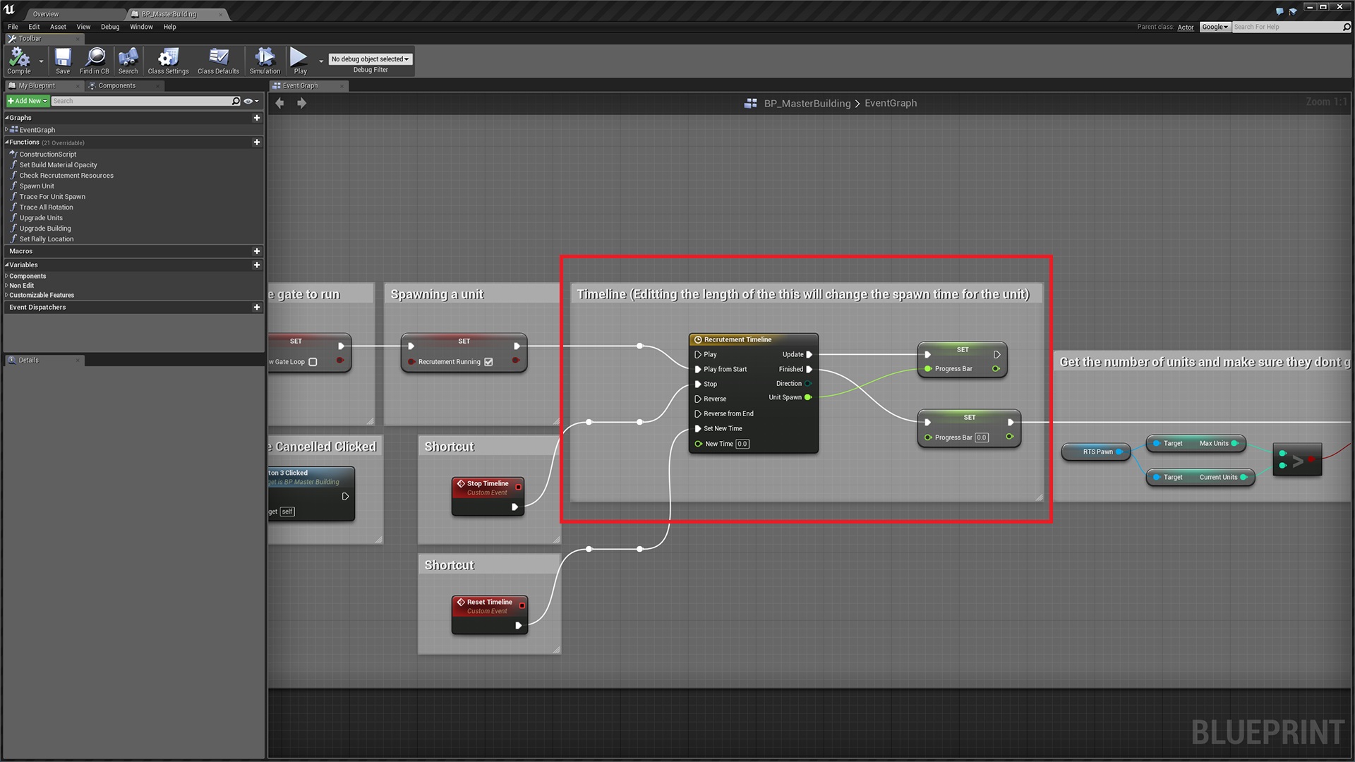 In the current version recruitment times are controlled by a timeline you can find this timeline in the master building blueprint.