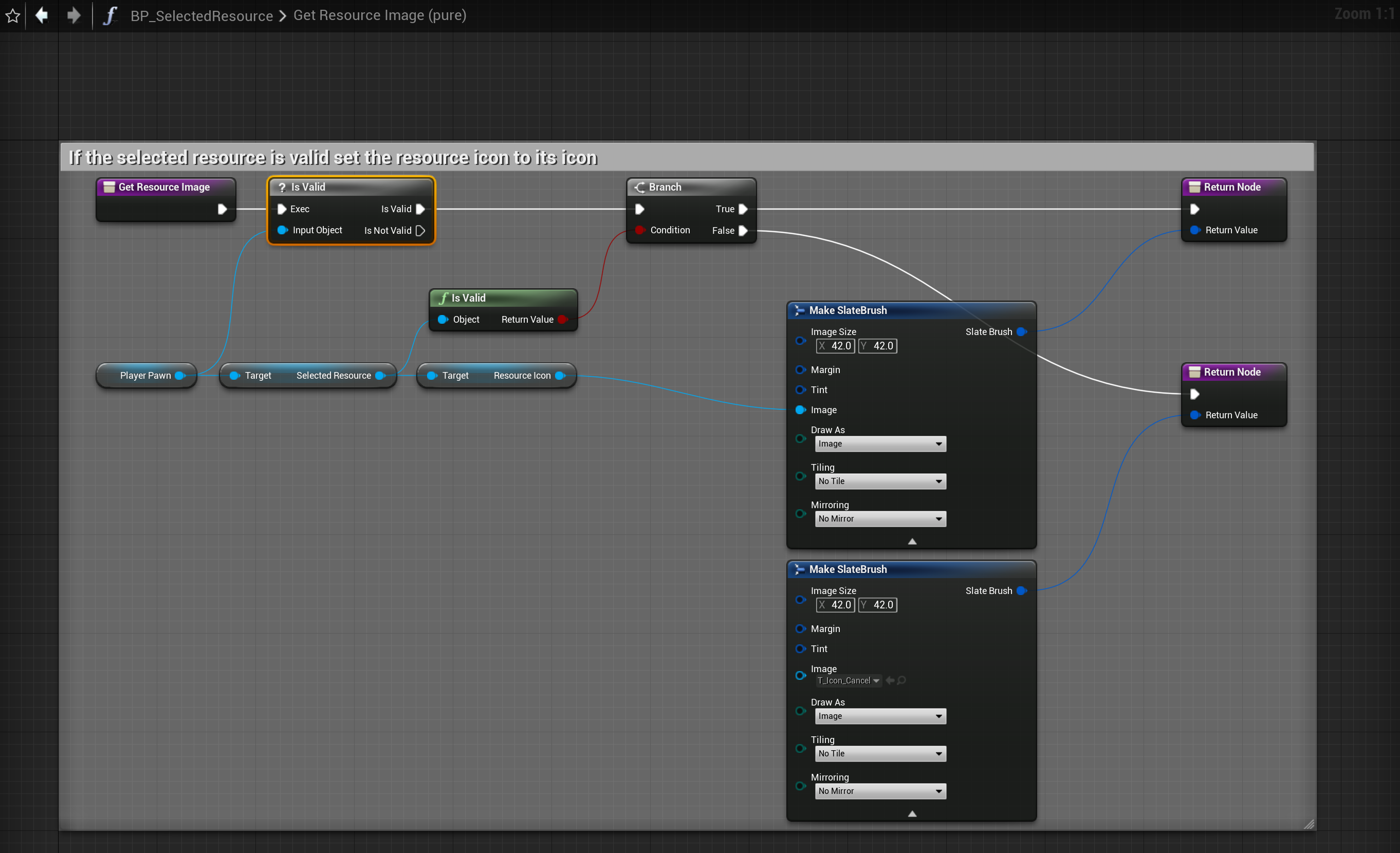 RTS Template – Fixed selected resource UI Error Add the highlighted nodes shown in the image below, location at the top of the image.