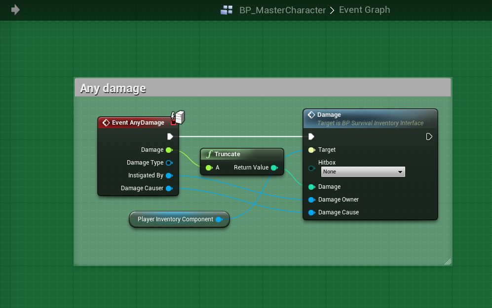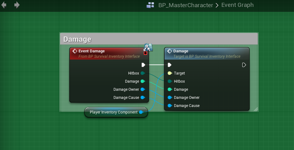 Add the owner and self nodes shown in the image below and connect the to the damage node