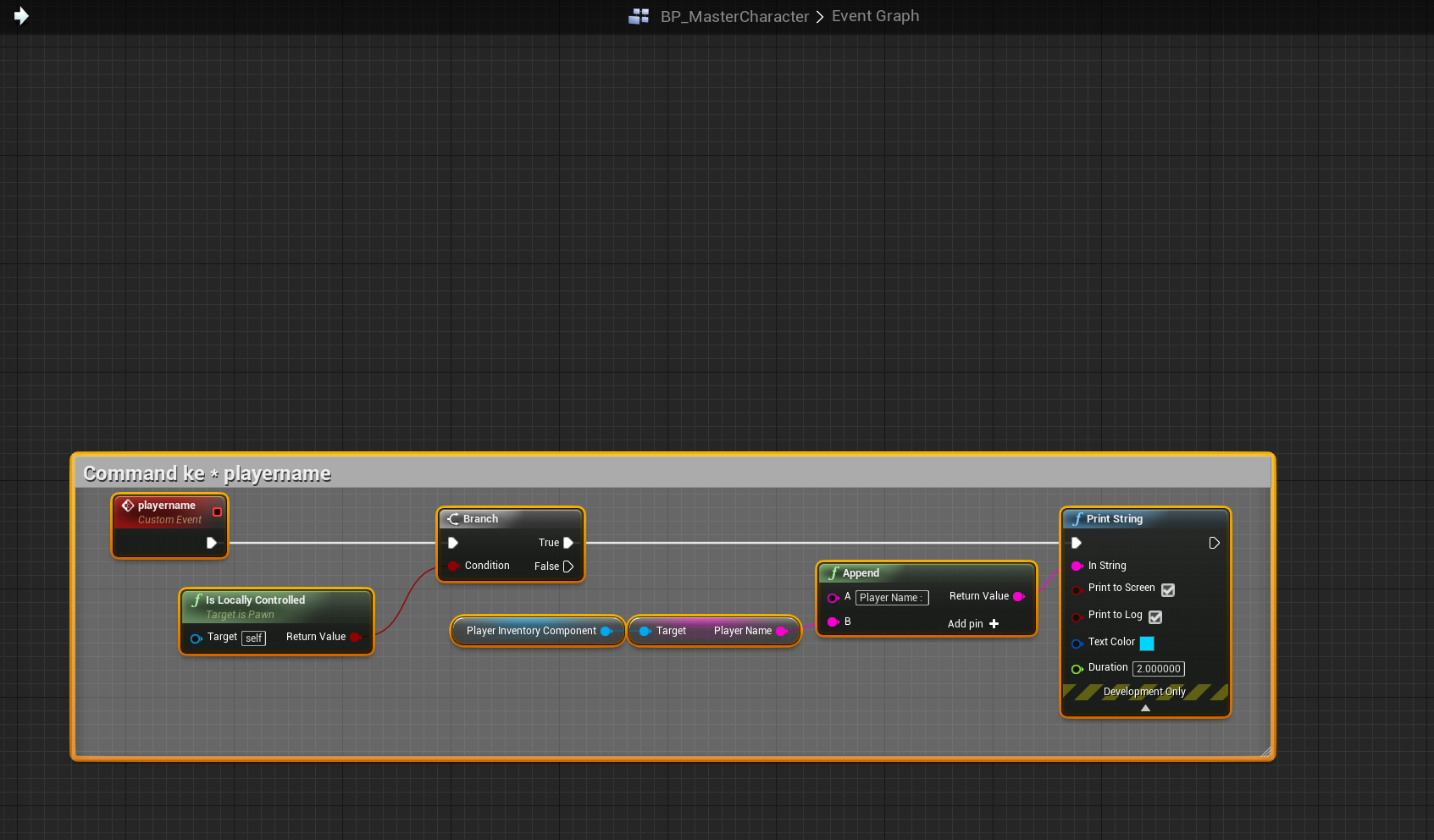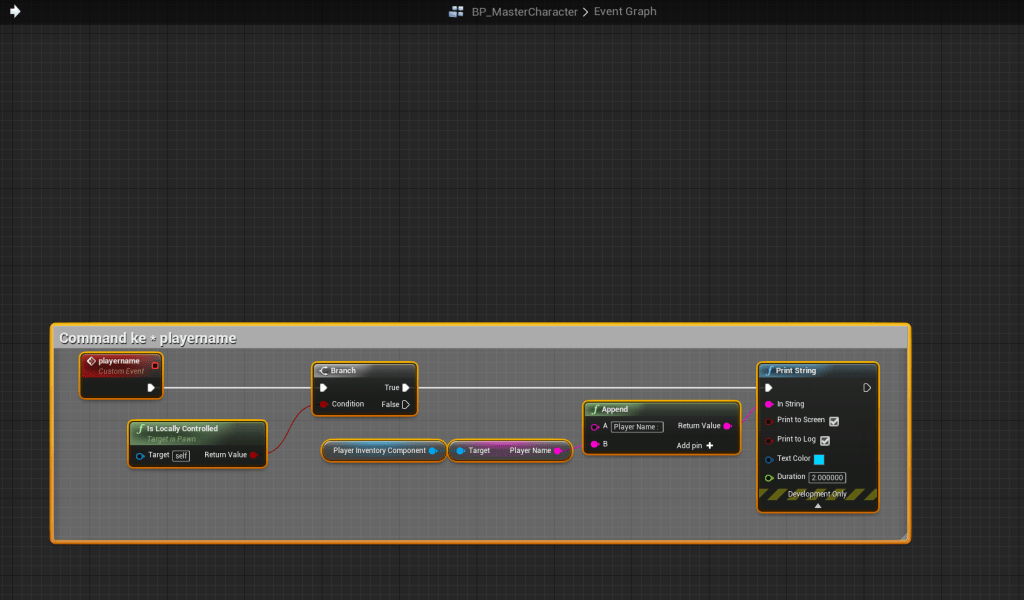 Go to the location shown below in the image and add the highlighted nodes, location at the top of the screenshot. You will need to create a new custom event and call it playername.