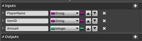 Next create another new function in the BP_SurvivalGameMode called CommandGiveItem and add the inputs shown in the image below.